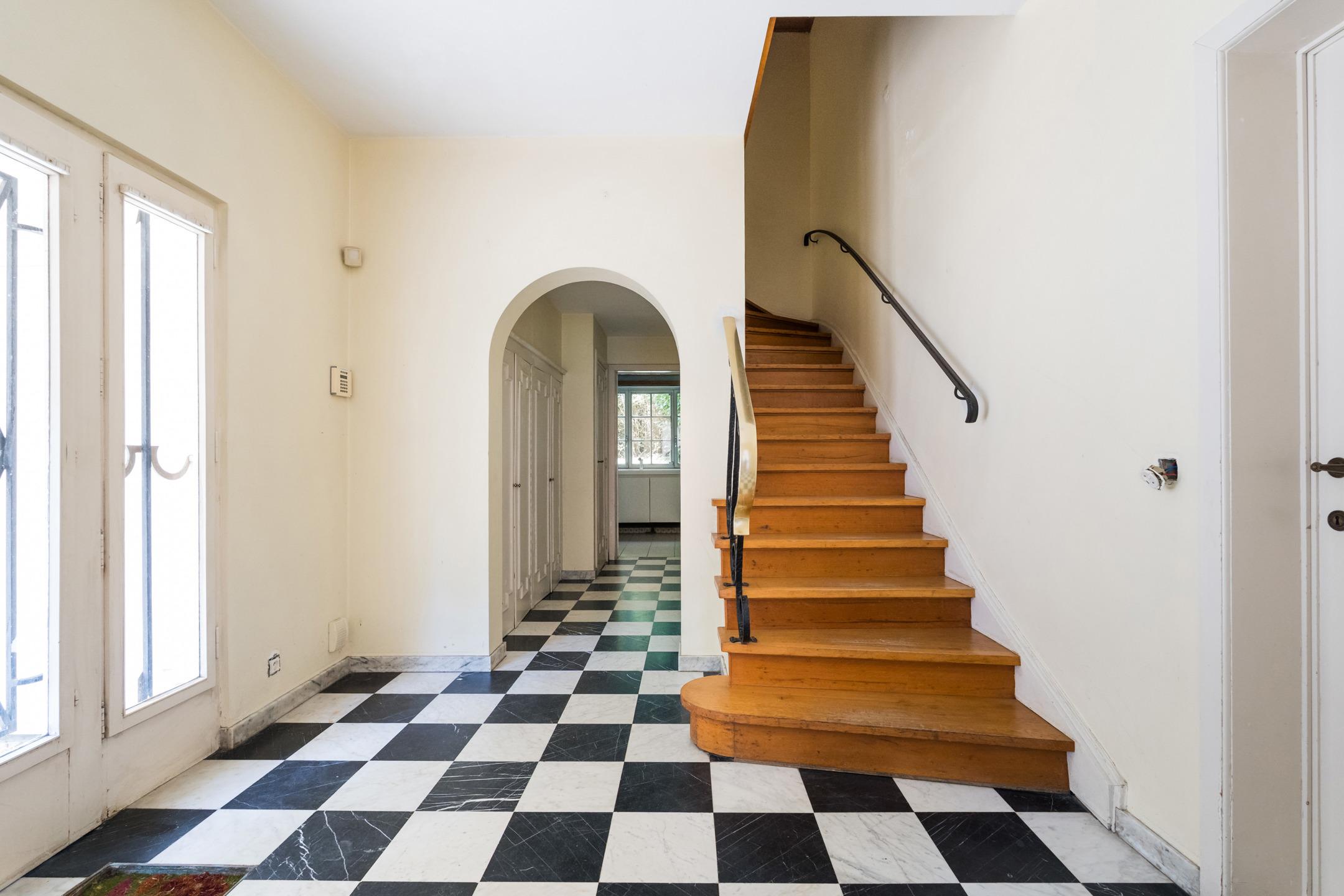 Uccle – Quartier Prince d’Orange. Nichée dans un écrin de verdure, cette charmante villa jumelée de 1966, érigée sur un terrain de ±23 ares 58 ca, offre un cadre de vie rare et privilégié. Actuellement divisée en deux habitations unifamiliales indépendantes, elle propose un total de 10 chambres, plusieurs espaces de vie lumineux, 5 salles de bains, 4 garages, ainsi qu’un grand jardin arboré garantissant intimité et tranquillité. La maison de gauche bénéficie d’un espace bien-être de ±80m² avec piscine intérieure, douches et vestiaire. Celle de droite séduit par ses volumes généreux, sa grande cuisine et son séjour avec feu ouvert. La propriété présente un fort potentiel de réaménagement, notamment la possibilité de réunir les deux unités pour créer une vaste villa familiale, sous réserve des autorisations urbanistiques nécessaires. Dossier sur demande. PEB : G. Électricité à remettre en conformité. RU disponibles sur demande. Une opportunité rare, à découvrir exclusivement chez Latour & Petit