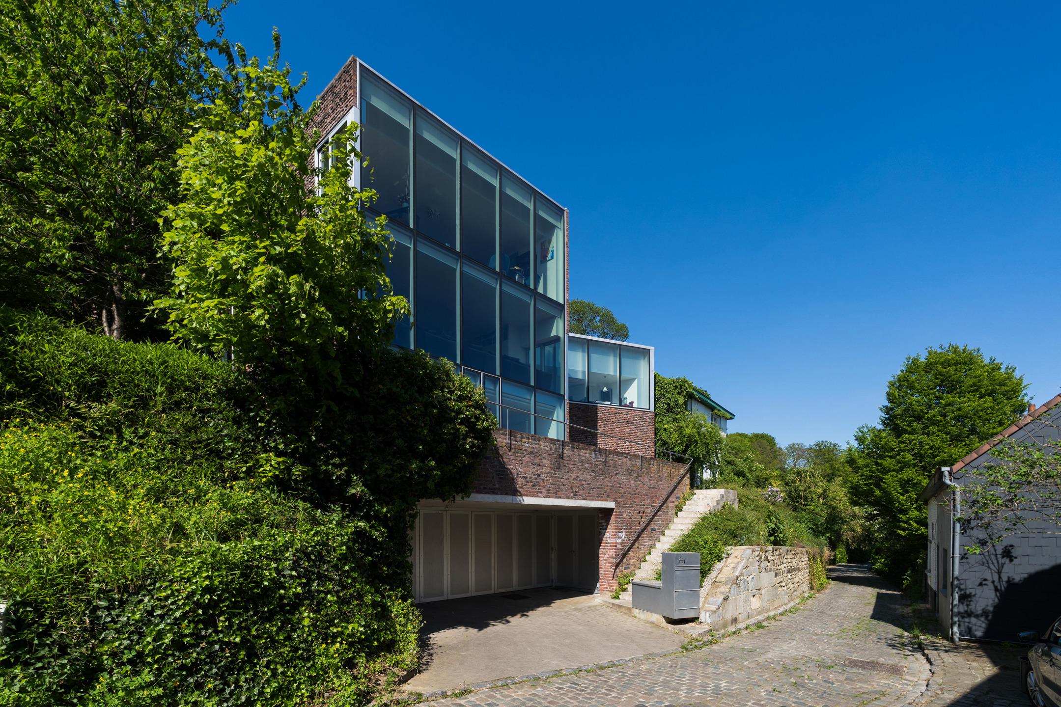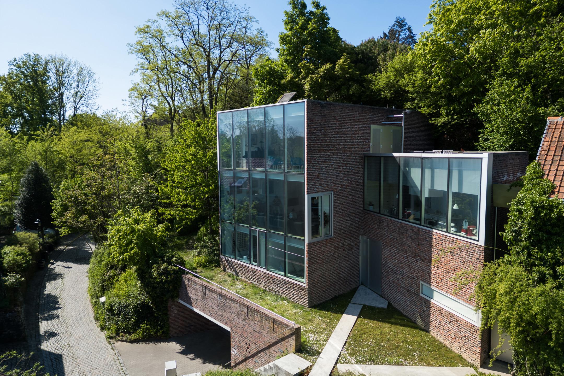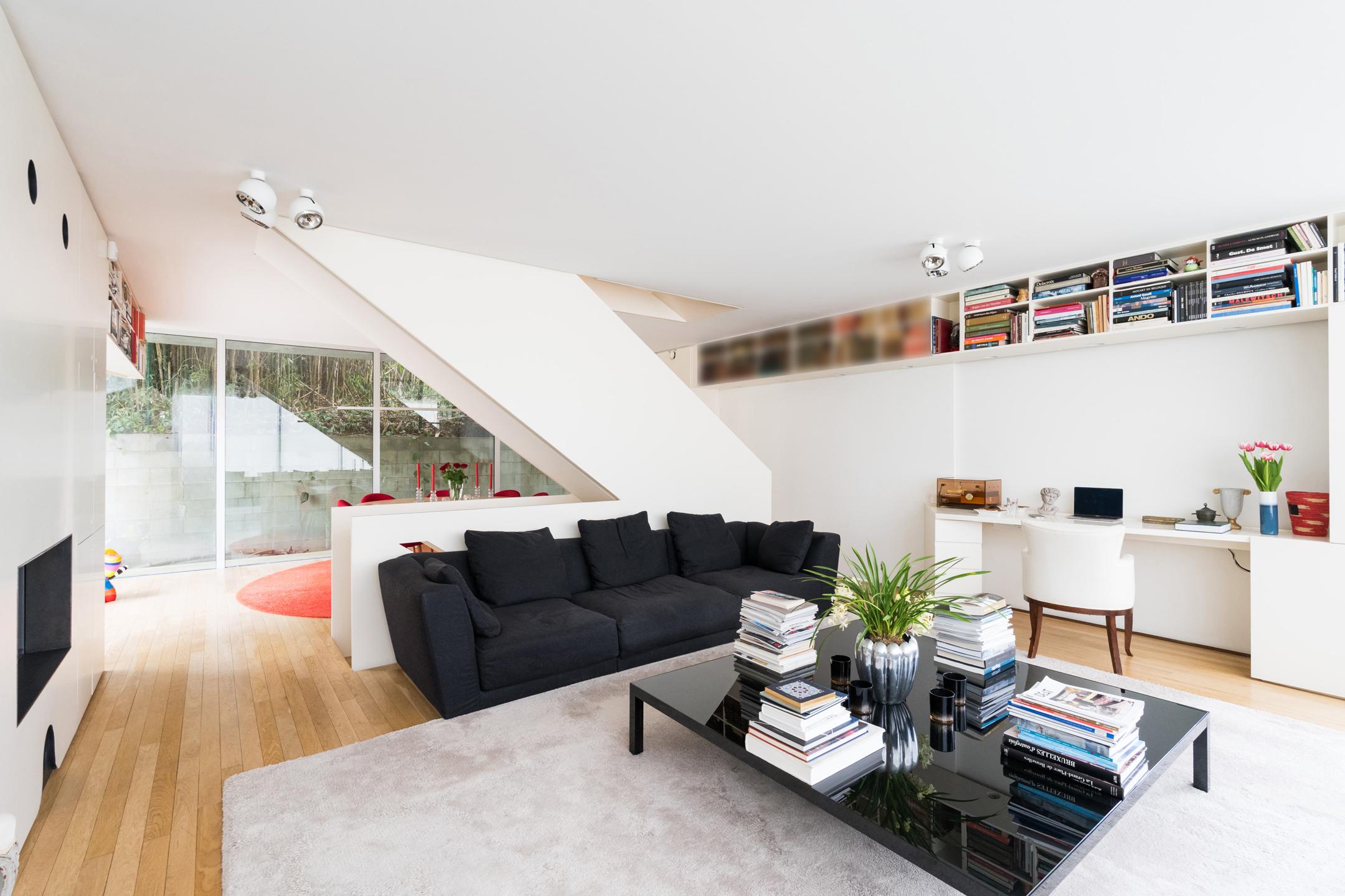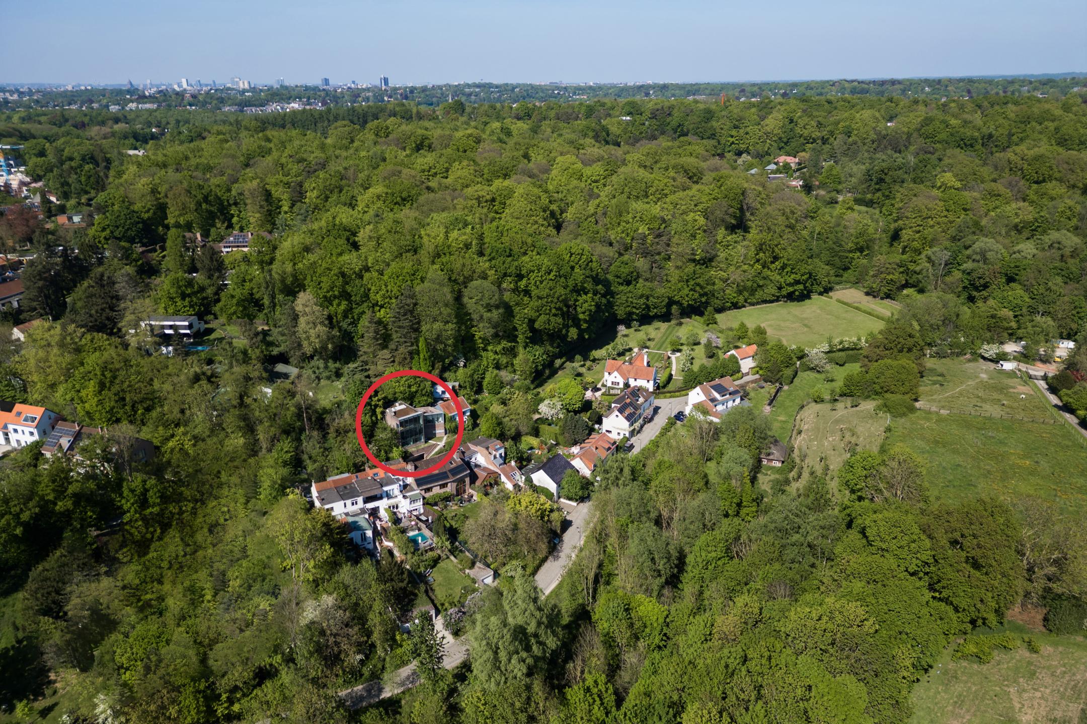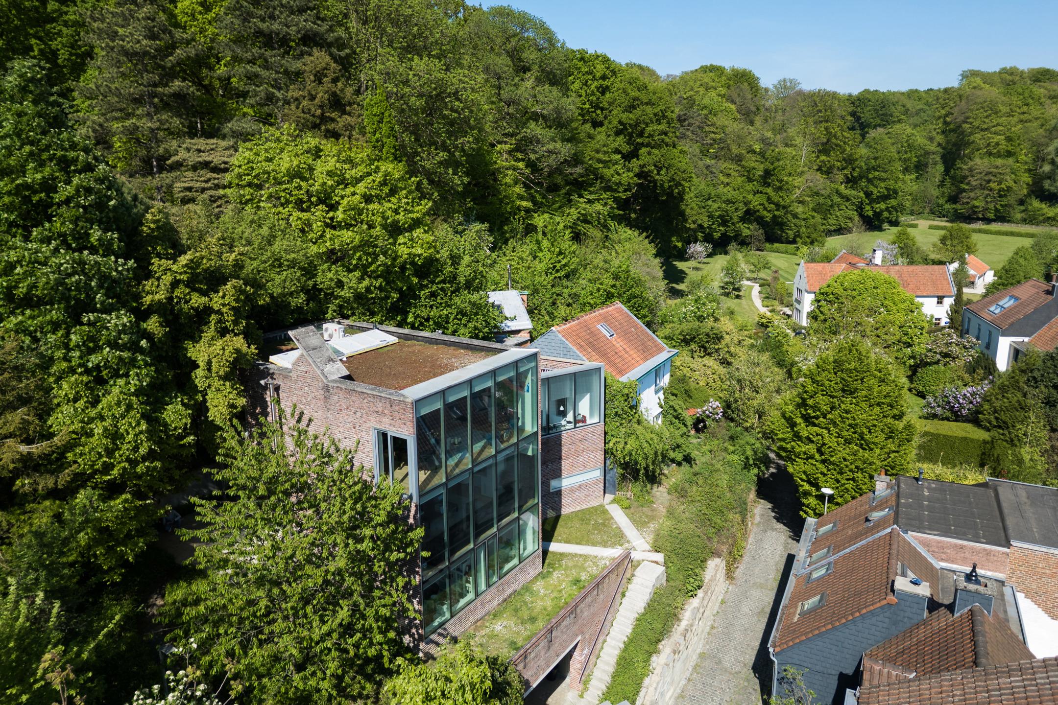 UCCLE – dans une rue calme derrière le bois de Verrewinkel, à la limite de Linkebeek, incroyable VILLA CONTEMPORAINE (5ch/1bur/2sdb) de ±307m² (surface PEB) et 385m² construits sur un terrain de 4a26ca. La réalisation audacieuse de celle-ci par l’architecte Pierre Hebbelinck a été terminée en 2011 avec toutes les techniques modernes et des finitions haut de gamme. La maison jouit de beaucoup de lumière, de jolies vues dégagées et a été adaptée à son environnement. Elle se compose comme suit : accès à l’entrée principale se trouvant en rez-de-jardin par des escaliers depuis la chaussée, hall d’entrée, dégagement d’escalier, wc invités et lave-mains, buanderie, 4 chambres, un dressing, une salle de douche et une salle de bains. Au 1er étage, magnifique espace de vie ouvert avec salle à manger, salon et cuisine ouverte super-équipée avec vue dégagée sur les champs. Accès à la terrasse. Au 2ème étage, suite parentale avec chambre, dressing, salle de bains et magnifique bureau baigné de lumière avec une splendide vue dégagée et un accès indépendant par l'extérieur. Accès à la terrasse en rooftop et escalier permettant de retourner au rez-de-jardin puis à la chaussée de manière indépendante. Au rez-de-chaussée, grand garage 2 voitures avec porte coulissante électrique et grande cave de rangements avec toutes les techniques. PEB D-. Chaudière à condensation, VMC double-flux, domotique, alarme... Un véritable produit d’esthète au cœur d’un des quartiers les plus verts de Bruxelles à découvrir en exclusivité avec L&P