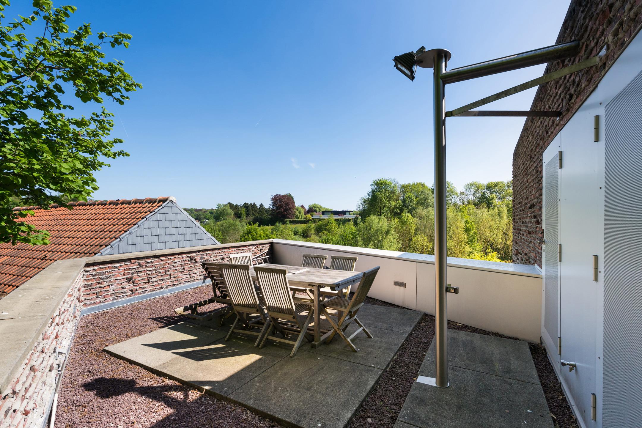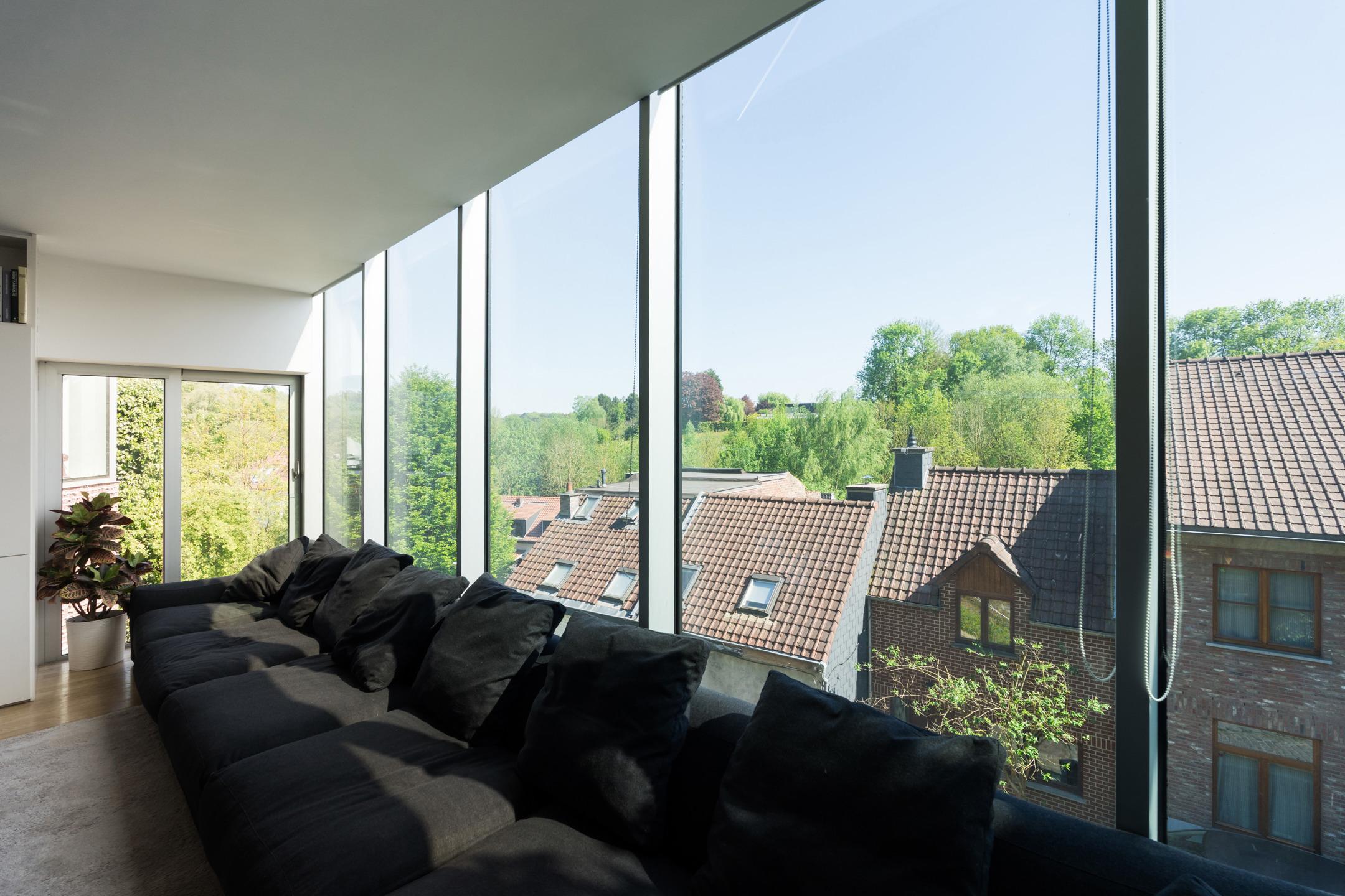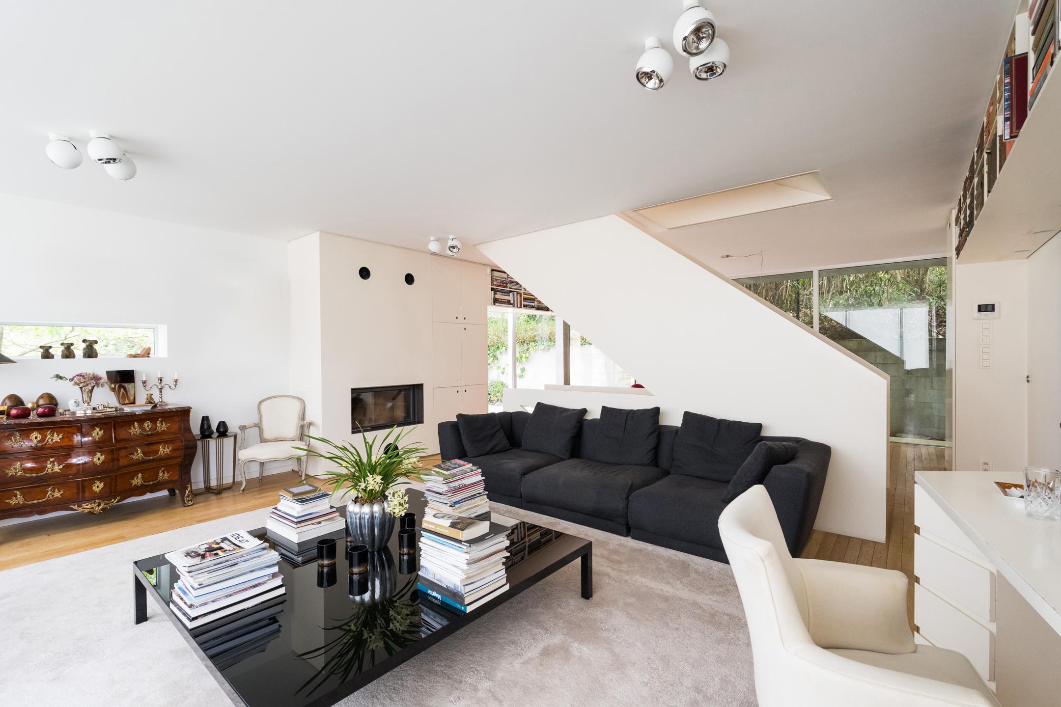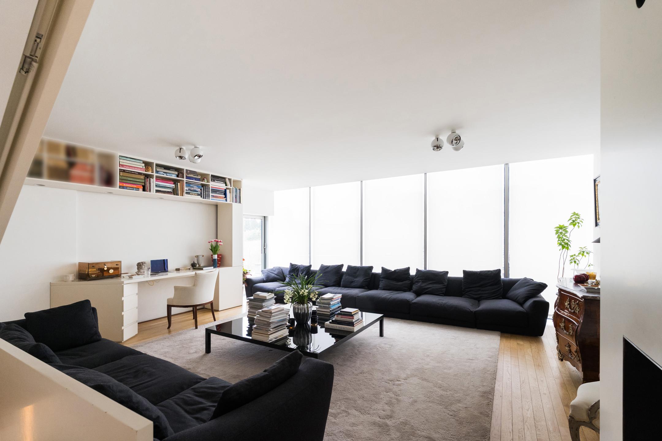 UCCLE – dans une rue calme derrière le bois de Verrewinkel, à la limite de Linkebeek, incroyable VILLA CONTEMPORAINE (5ch/1bur/2sdb) de ±307m² (surface PEB) et 385m² construits sur un terrain de 4a26ca. La réalisation audacieuse de celle-ci par l’architecte Pierre Hebbelinck a été terminée en 2011 avec toutes les techniques modernes et des finitions haut de gamme. La maison jouit de beaucoup de lumière, de jolies vues dégagées et a été adaptée à son environnement. Elle se compose comme suit : accès à l’entrée principale se trouvant en rez-de-jardin par des escaliers depuis la chaussée, hall d’entrée, dégagement d’escalier, wc invités et lave-mains, buanderie, 4 chambres, un dressing, une salle de douche et une salle de bains. Au 1er étage, magnifique espace de vie ouvert avec salle à manger, salon et cuisine ouverte super-équipée avec vue dégagée sur les champs. Accès à la terrasse. Au 2ème étage, suite parentale avec chambre, dressing, salle de bains et magnifique bureau baigné de lumière avec une splendide vue dégagée et un accès indépendant par l'extérieur. Accès à la terrasse en rooftop et escalier permettant de retourner au rez-de-jardin puis à la chaussée de manière indépendante. Au rez-de-chaussée, grand garage 2 voitures avec porte coulissante électrique et grande cave de rangements avec toutes les techniques. PEB D-. Chaudière à condensation, VMC double-flux, domotique, alarme... Un véritable produit d’esthète au cœur d’un des quartiers les plus verts de Bruxelles à découvrir en exclusivité avec L&P