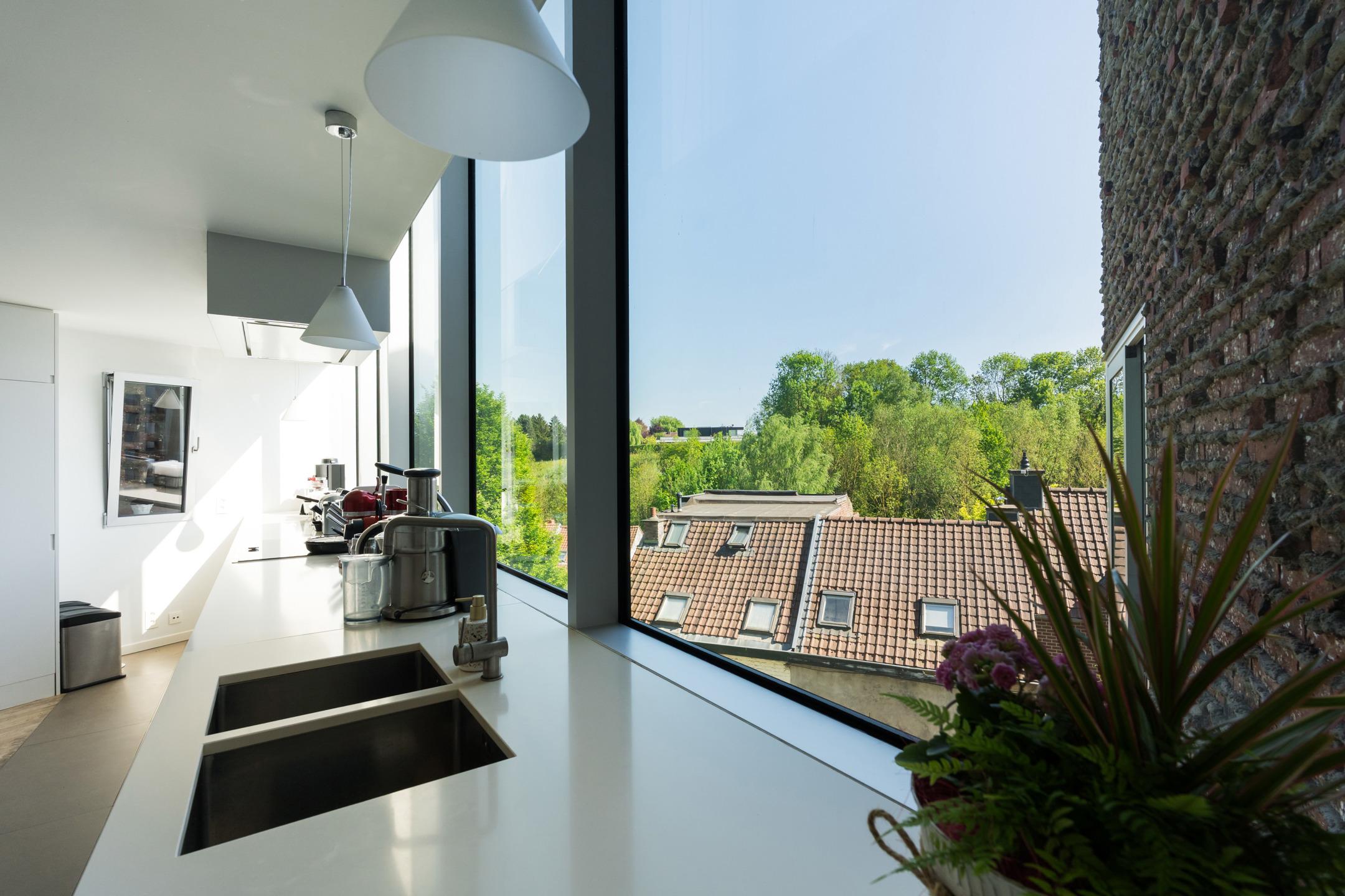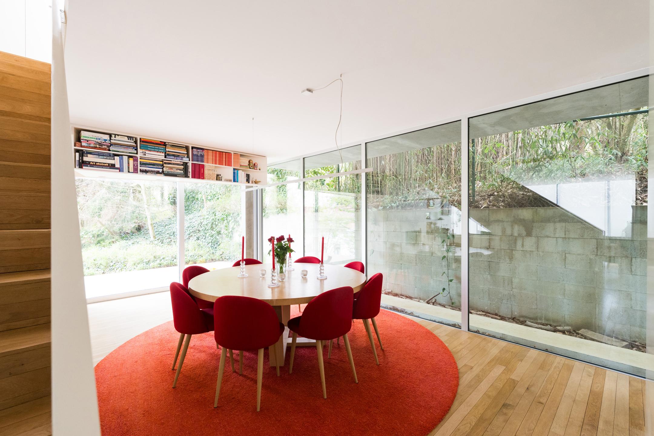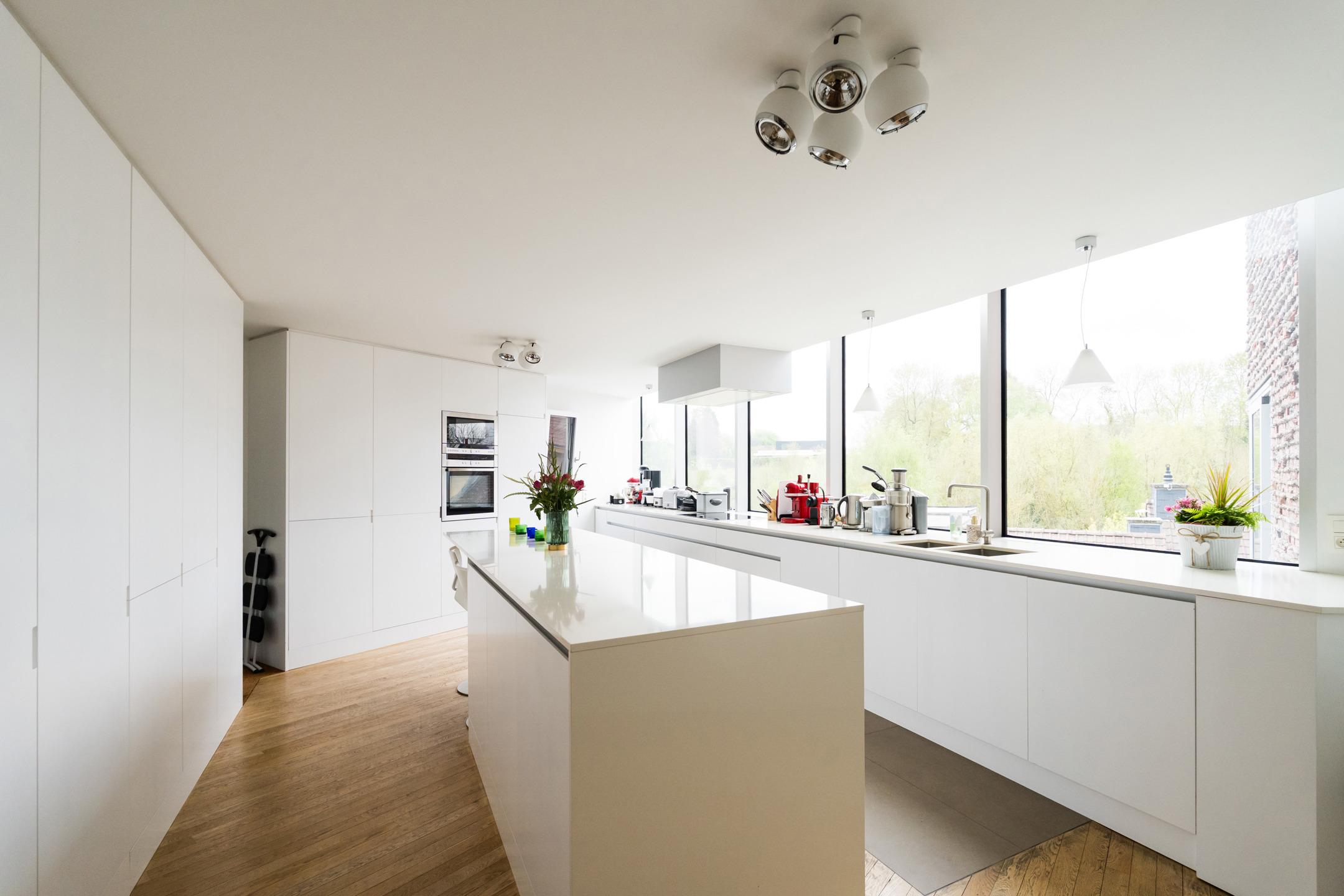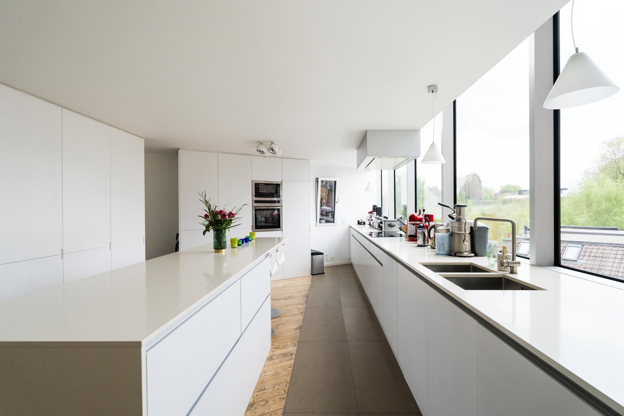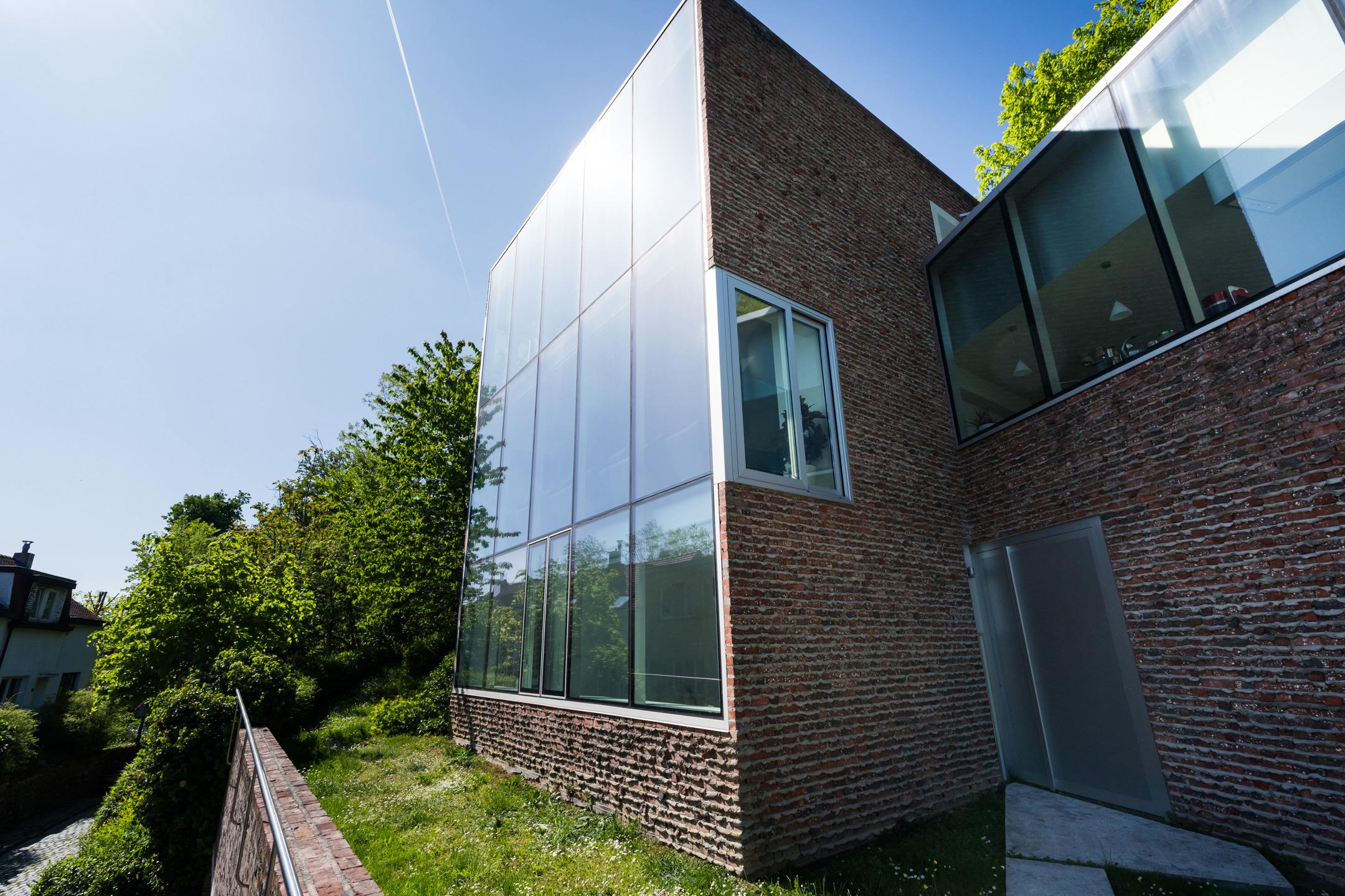 UCCLE – dans une rue calme derrière le bois de Verrewinkel, à la limite de Linkebeek, incroyable VILLA CONTEMPORAINE (5ch/1bur/2sdb) de ±307m² (surface PEB) et 385m² construits sur un terrain de 4a26ca. La réalisation audacieuse de celle-ci par l’architecte Pierre Hebbelinck a été terminée en 2011 avec toutes les techniques modernes et des finitions haut de gamme. La maison jouit de beaucoup de lumière, de jolies vues dégagées et a été adaptée à son environnement. Elle se compose comme suit : accès à l’entrée principale se trouvant en rez-de-jardin par des escaliers depuis la chaussée, hall d’entrée, dégagement d’escalier, wc invités et lave-mains, buanderie, 4 chambres, un dressing, une salle de douche et une salle de bains. Au 1er étage, magnifique espace de vie ouvert avec salle à manger, salon et cuisine ouverte super-équipée avec vue dégagée sur les champs. Accès à la terrasse. Au 2ème étage, suite parentale avec chambre, dressing, salle de bains et magnifique bureau baigné de lumière avec une splendide vue dégagée et un accès indépendant par l'extérieur. Accès à la terrasse en rooftop et escalier permettant de retourner au rez-de-jardin puis à la chaussée de manière indépendante. Au rez-de-chaussée, grand garage 2 voitures avec porte coulissante électrique et grande cave de rangements avec toutes les techniques. PEB D-. Chaudière à condensation, VMC double-flux, domotique, alarme... Un véritable produit d’esthète au cœur d’un des quartiers les plus verts de Bruxelles à découvrir en exclusivité avec L&P