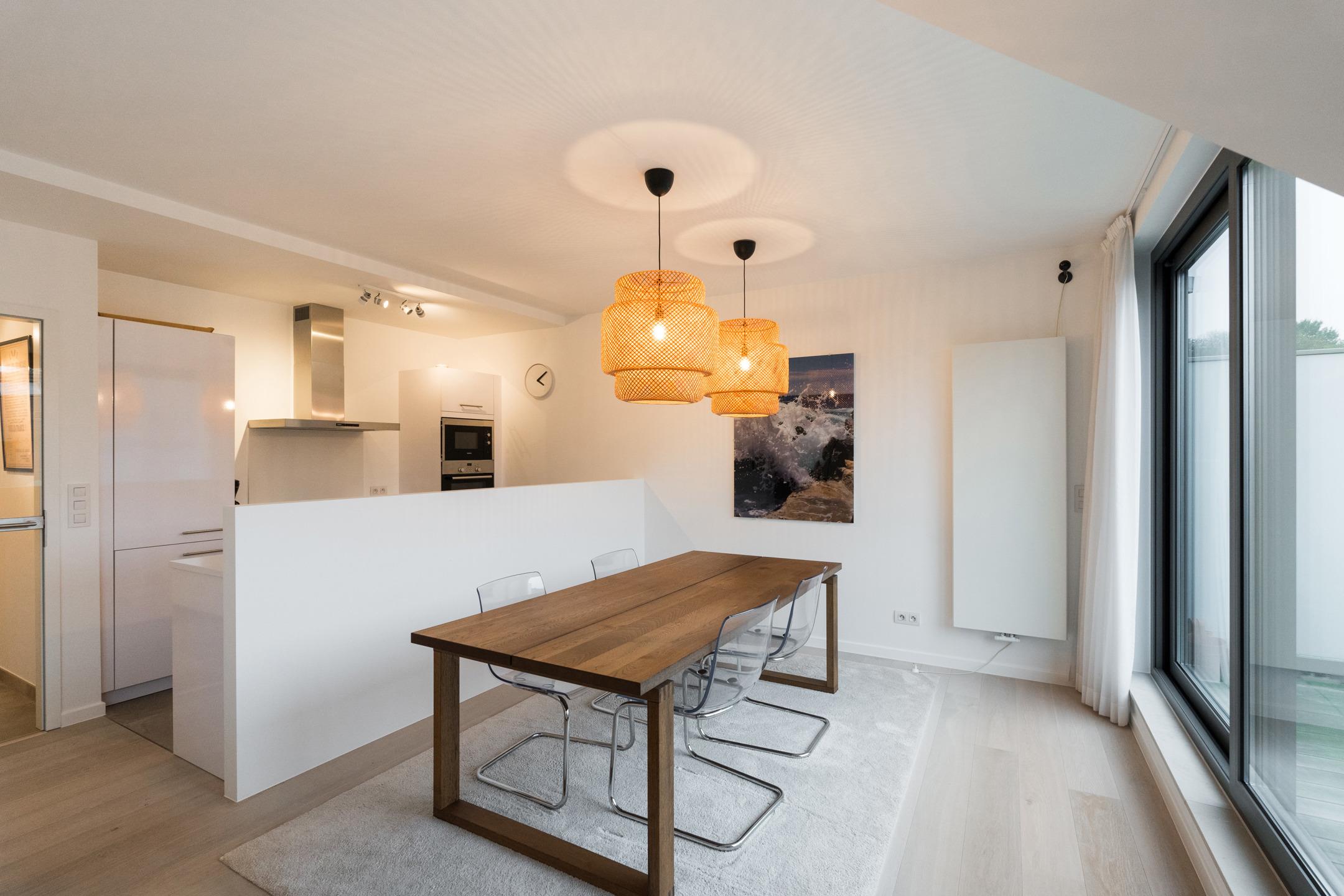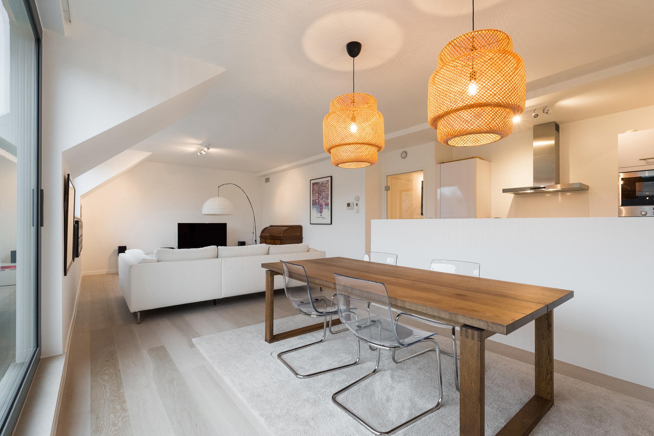 OPTION VENTE -----WOLUWE-SAINT-LAMBERT, dans un clos calme et arboré à proximité du Shopping, magnifique PENTHOUSE avec PEB C - (2ch/2sdb) de 100m² avec TERRASSES et PARKING. Situé au 3ème et dernier étage d'un petit immeuble de standing construit en 2016, il se compose d'un hall d'entrée avec toilette visiteurs, vestiaire, local technique avec buanderie, lumineux living comprenant le salon et la salle à manger avec accès à la terrasse orientée Ouest (8m²), cuisine américaine super-équipée, hall de nuit desservant: une chambre (15m²) avec placards intégrés et salle de bains et une 2ème chambre (11m²) avec placards intégrés et salle de douche, terrasses (21m²) En sous-sol: cave et emplacement de parking. FAIBLE PEB : C (117kWh/m²/an) - Certificat électrique conforme. Ventilation double flux individuelle. Chaudière collective au gaz à condensation avec compteurs individuels. Une belle opportunité à saisir en exclusivité chez L&P