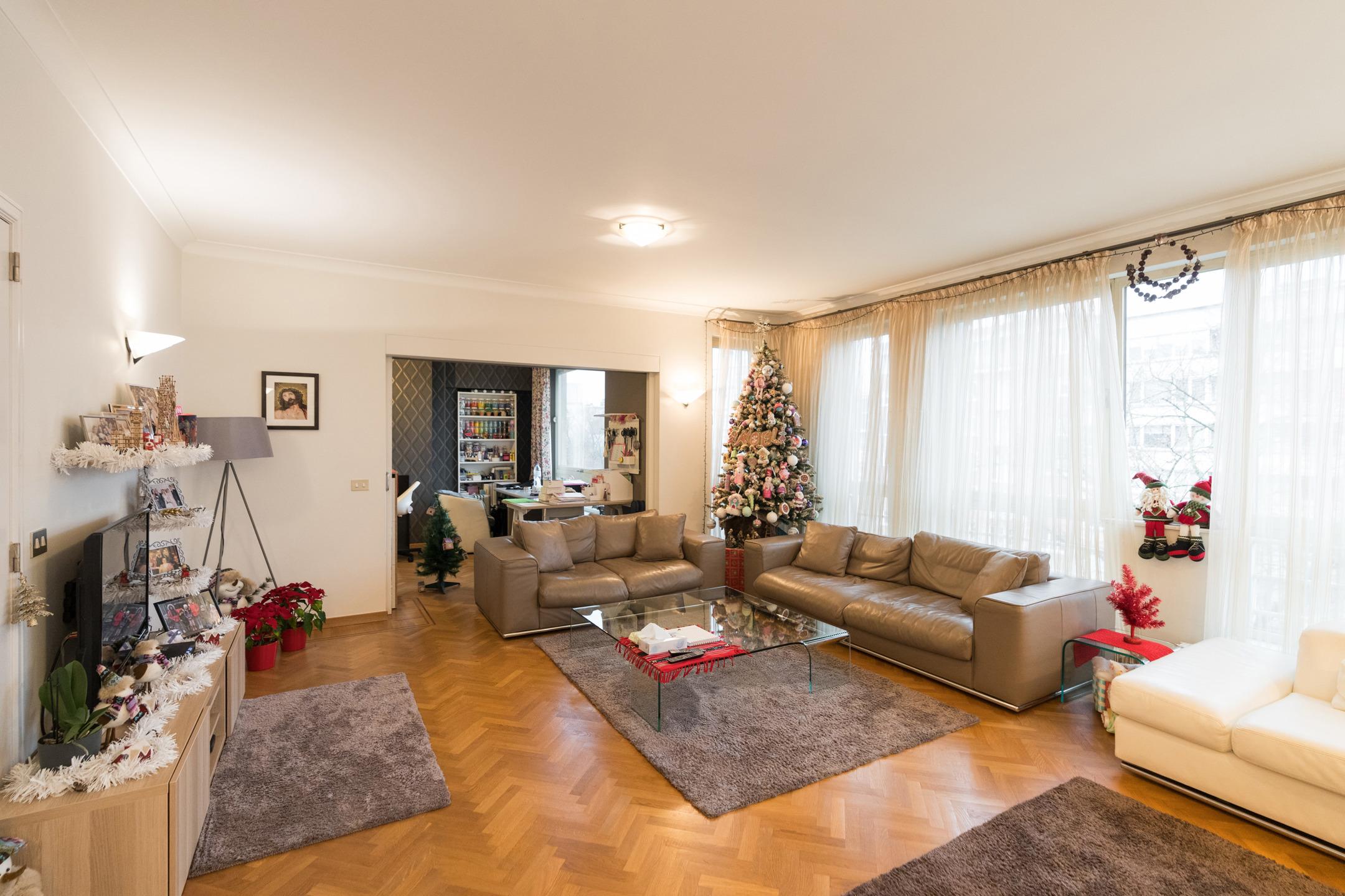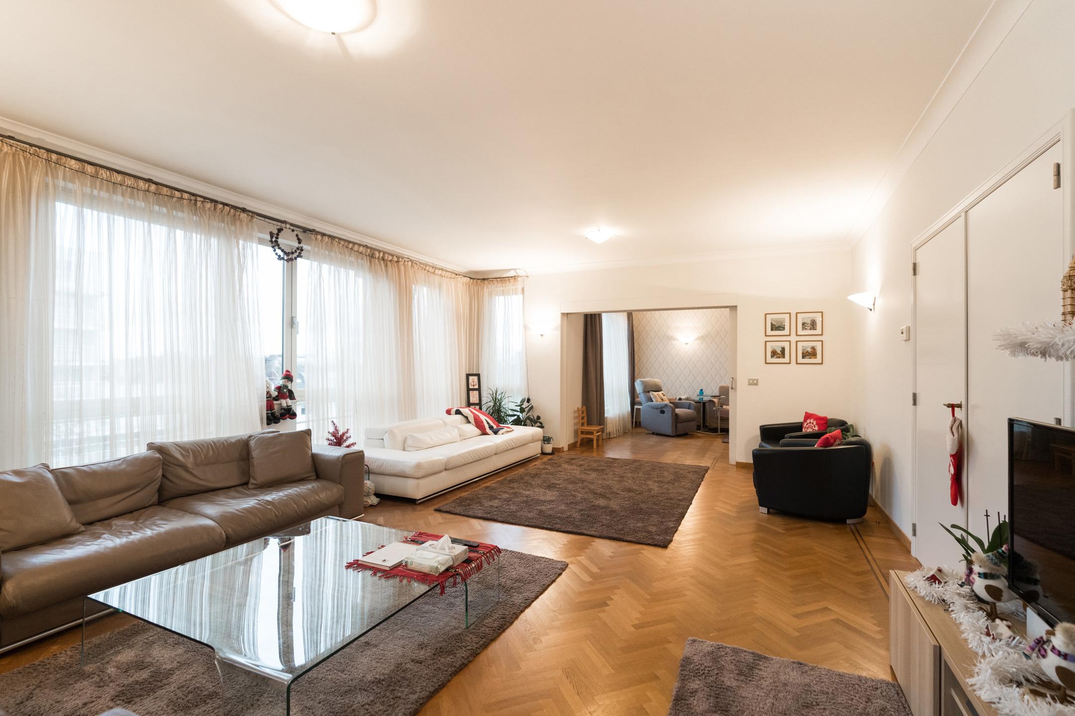 WOLUWE-SAINT-LAMBERT, situé à deux pas du square Montgomery au 5e étage d'un immeuble de standing, magnifique APPARTEMENT (3ch/2sdb) de +/- 220m² habitables avec terrasse, garage box et deux emplacements de parking. Il se compose d'un grand hall d'entrée de 14m² (marbre), vestiaire avec toilette invités, grand salon de 35m² (parquet), salle à manger (parquet), arrière cuisine avec espace machines (carrelage), cuisine super équipée (carrelage) avec accès à la terrasse, bureau (parquet), hall de nuit desservant 2 chambres de 14m² chacune (parquet), salle de bains (baignoire, douche, wc, 2 lavabos - carrelage), suite parentale avec dressing, salle de bains (baignoire, douche, wc, bidet, 2 lavabos - carrelage) et grande chambre de 18m² (parquet) avec accès à la terrasse. Il comprend également un garage box (+40.000€) avec emplacement de parking en devanture d'immeuble, un second emplacement de parking et une cave au sous-sol. PEB C (143 kWh/m²/an). Electricité non-conforme (sera mise aux normes par le propriétaire pour la signature de l'acte). Update RU en cours (RU 2022 disponibles). A découvrir sans plus attendre chez L&P!
