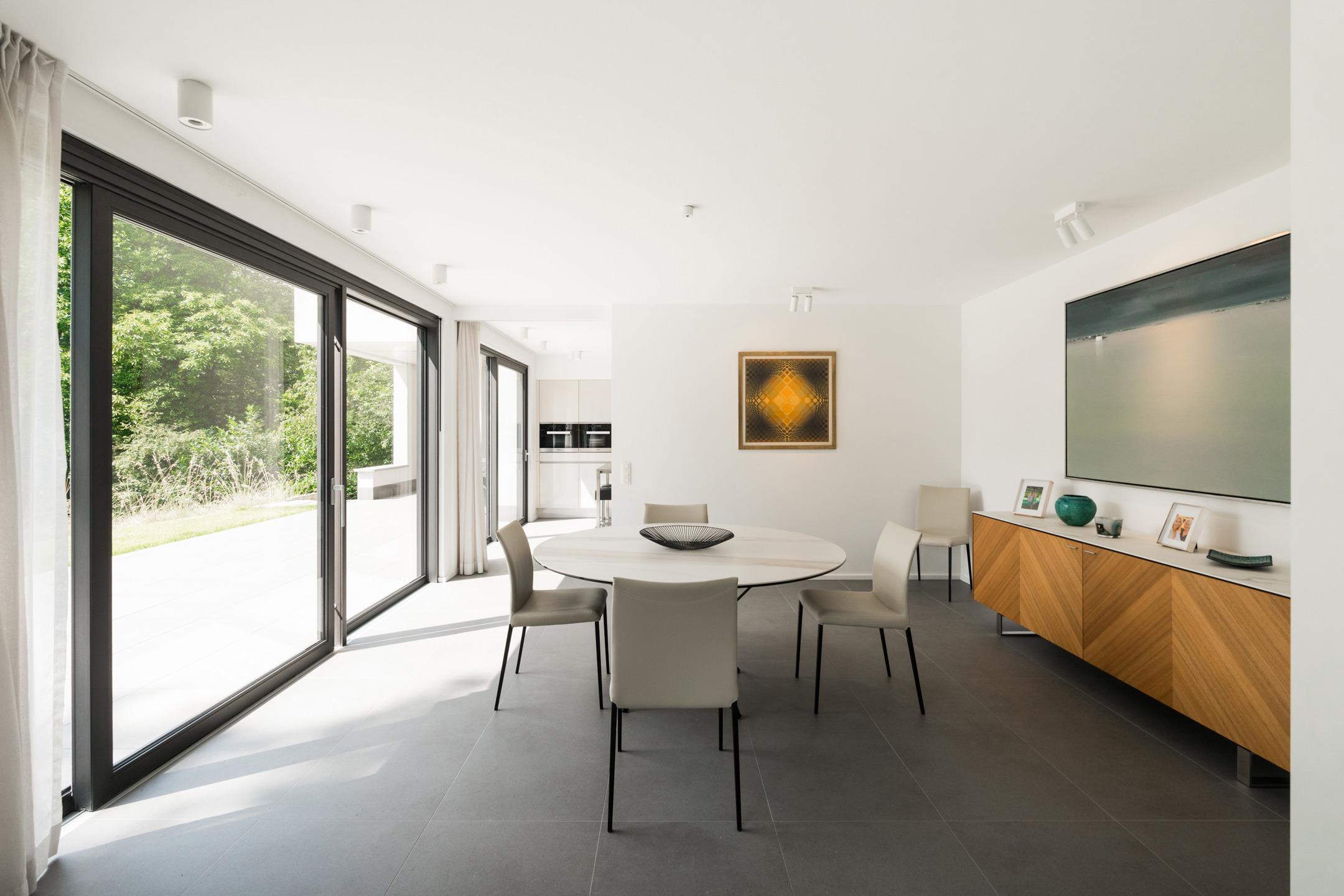RIXENSART, entre le centre et le Lac de Genval, exceptionnelle VILLA CONTEMPORAINE (3ch/2sdb/bureau) au style raffiné et épuré. Bénéficiant d’une surprenante luminosité, d'une grande intimité et d’une VUE dégagée, elle offre un total de 390m². Construite en 2017 avec des matériaux hauts de gamme et aménagée avec raffinement, elle se compose d'un hall, un beau séjour ouvert sur les terrasses et le jardin, une splendide cuisine parfaitement équipée et cellier/débarras, une salle à manger. A l'étage, 3 grandes chambres dont la suite parentale complète (chambre, dressing, sdb), buanderie et salle de douches. Au sous-sol, des caves et de beaux espaces aménagés en pièces de vie (familyroom, bureaux,...). L'extérieur dispose de belles terrasses, remise, carport, stationnements devant la maison. PEB B. Une opportunité à découvrir avec L&P !