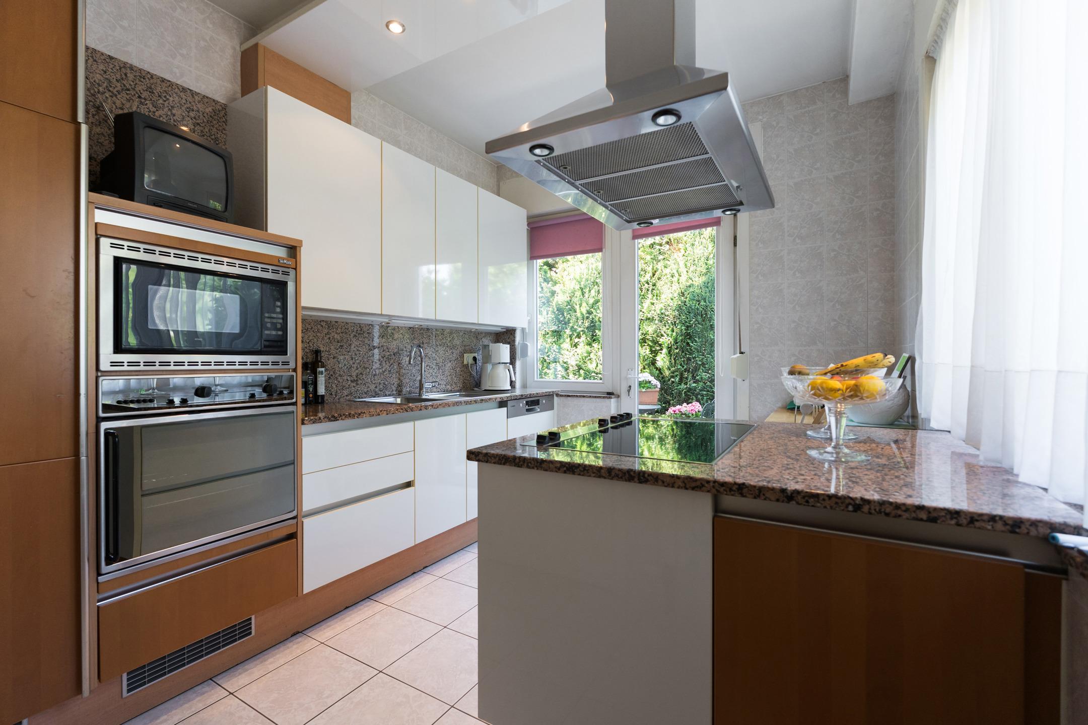 Au rez-de-chaussée : Hall d’entrée avec vestiaire, toilette invités avec lave-mains, salon avec feu ouvert, salle à manger, cuisine, bureau, garage pour une voiture avec espace chaufferie.