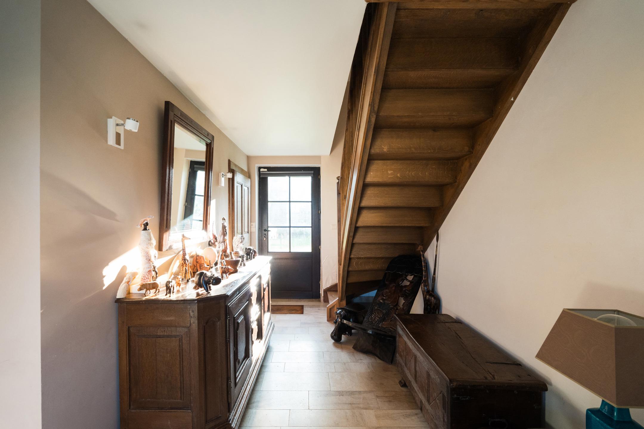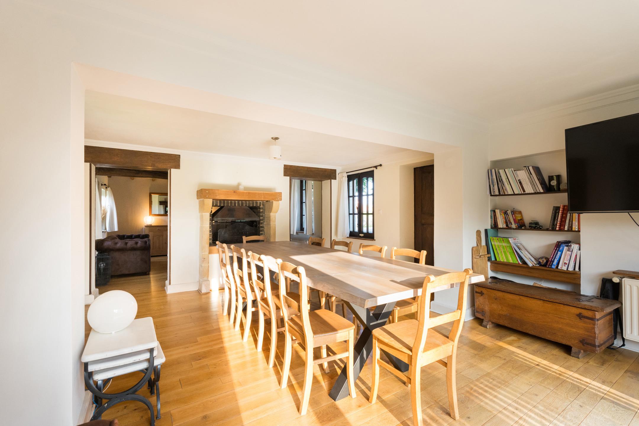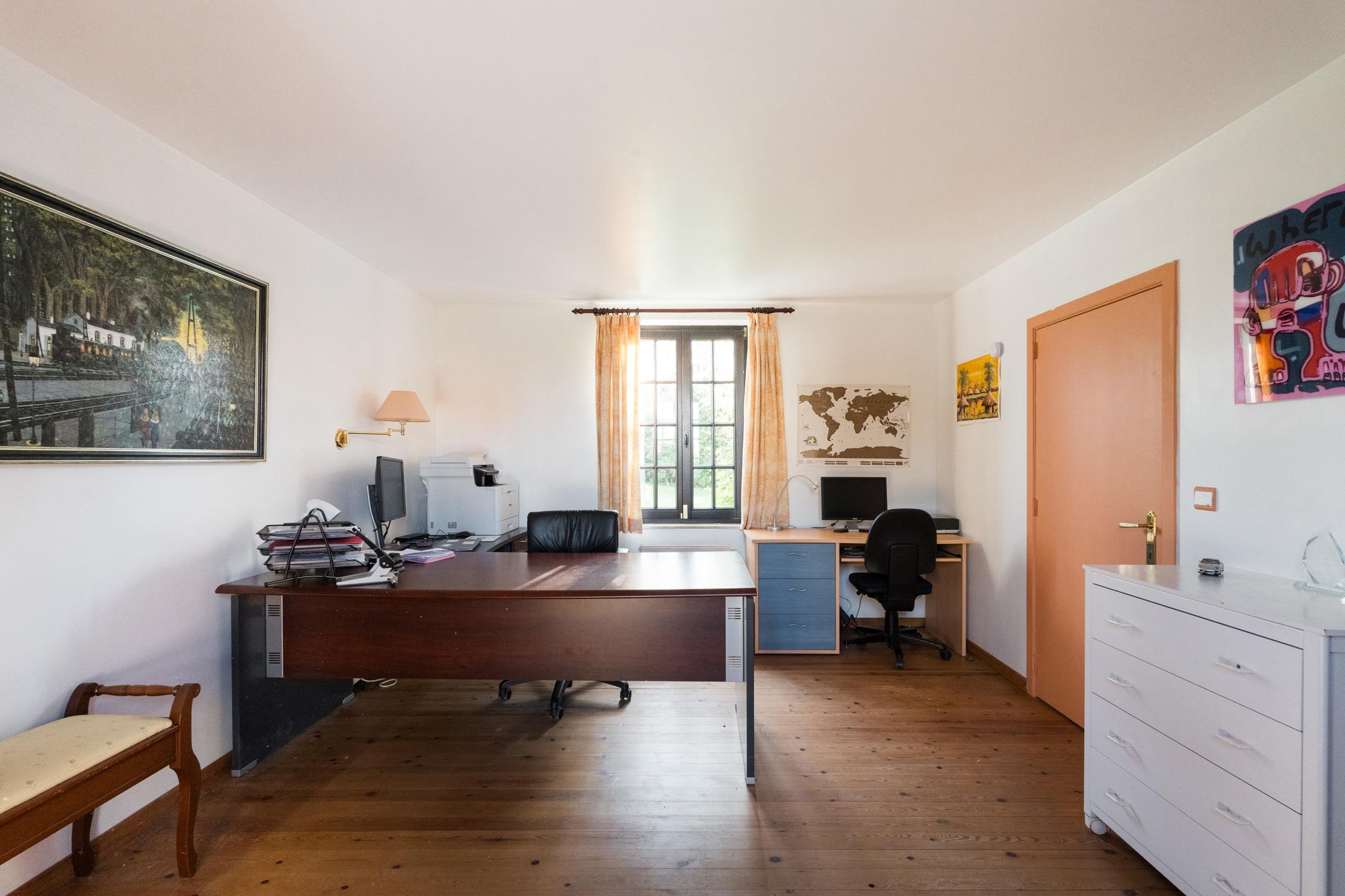 Lasne-Chapelle-Saint-Lambert, Ravissante VILLA Fermette (5CH/SDB/3SDD/2BUR) en bon état offrant de beaux volumes et une agréable luminosité. Beau terrain plat de 23 ares 59ca orienté Sud-Ouest. Environnement verdoyant, beau jardin, parking 6 voitures, double car port, garage une voiture.Au rez: Hall d’entrée, toilette visiteur, salle à manger spacieuse en plancher avec feu ouvert double face, séjour en plancher, cuisine rénovée + coin déjeuner et accès extérieur, hall secondaire avec accès jardin, 2e toilette, grand bureau servant de salle de jeux (plancher) avec feu ouvert, 1ère chambre (plancher) avec salle de douche. Sous-sol:cave spacieuse; chaufferie mazout, boiler, techniques pour panneaux photovoltaïques et batterie. Les extérieurs: parking, terrasse, jardin, portail, carport, tente solaire. Au 1er : hall de nuit avec placard, 2e chambre spacieuse en plancher, 2e salle de douches avec toilette, espace grenier, 3e chambre avec placards et balcon privatif, 3e salle de douches avec buanderie, toilette indépendante, hall de nuit secondaire offrant un beau dégagement, 4e chambre, 5e chambre, salle de bains, bureau ou dressing. Les techniques: PEB D, électricité non conforme, châssis simple et double vitrage bois, chauffage mazout de 2007, production eau chaude (boiler) via pompe à chaleur, 16 panneaux photovoltaïques, batterie annexe, fosse septique mais possibilité de se relier aux égouts moyennant redevance. Villa spacieuse pleine de charme offrant un cadre bucolique!