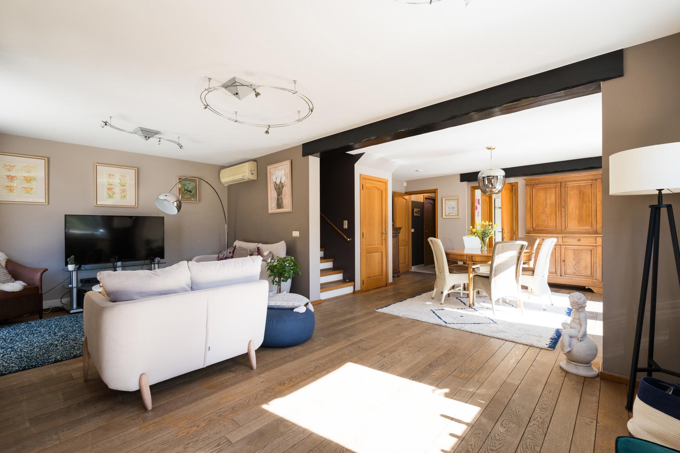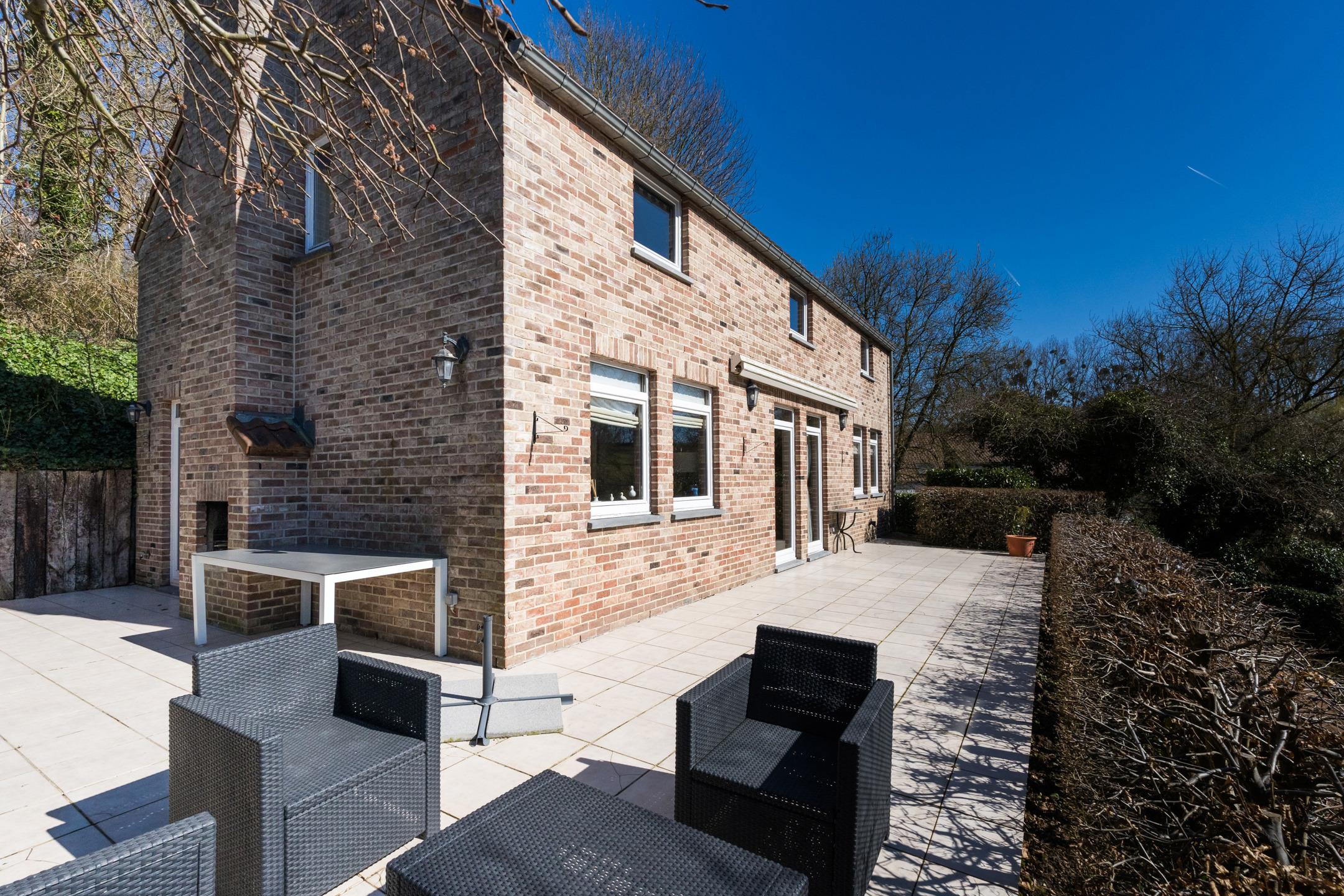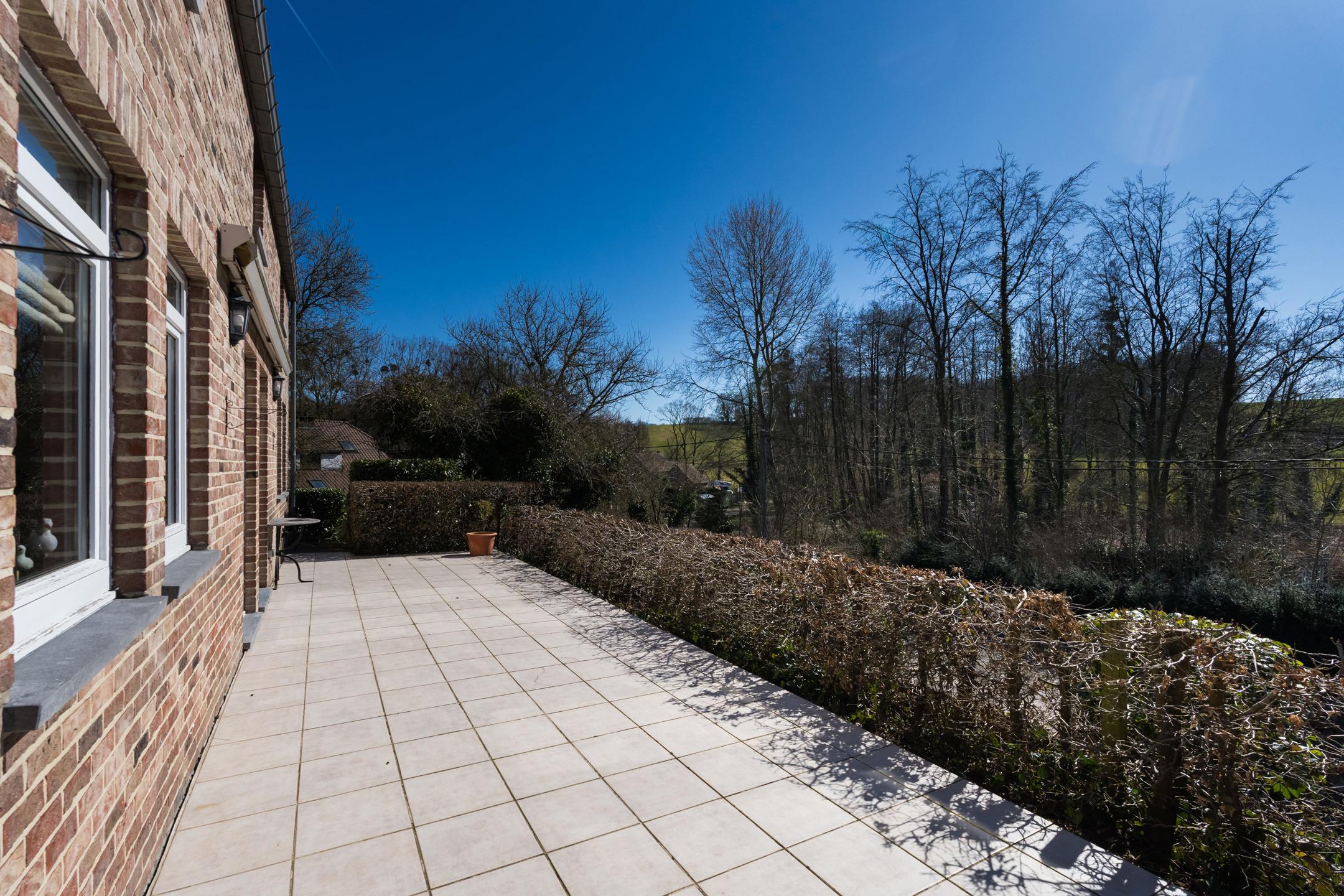 GREZ-DOICEAU, à la limite de Piéterais, chaleureuse VILLA (4ch / 2sdb) avec garage. Bâtie en retrait et en hauteur par rapport à la voirie elle a une position dominante sur la campagne environnante, bénéficie d’une agréable INTIMITE et d’une magnifique VUE dégagée ! Construite en 1994 et soigneusement entretenue, elle offre une superficie totale de 225 m², dont 170 m² habitables. Elle se compose d'un hall d’entrée avec vestiaire et toilette visiteurs, un séjour lumineux donnant accès aux terrasses et au jardin, une belle cuisine et un débarras. Au 1er étage : le hall de nuit dessert 4 chambres, une salle de bains, une salle de douches ainsi qu’une mezzanine accessible via l’une des chambres. Le terrain totalise près de 30 ares; il dispose d'un bel espace jardin et sous-bois qui se trouvent en surplomb de la maison. Au niveau de la rue, un grand garage et emplacements de parking. PEB C (210kWh/m²/an). A découvrir sans tarder avec L&P...