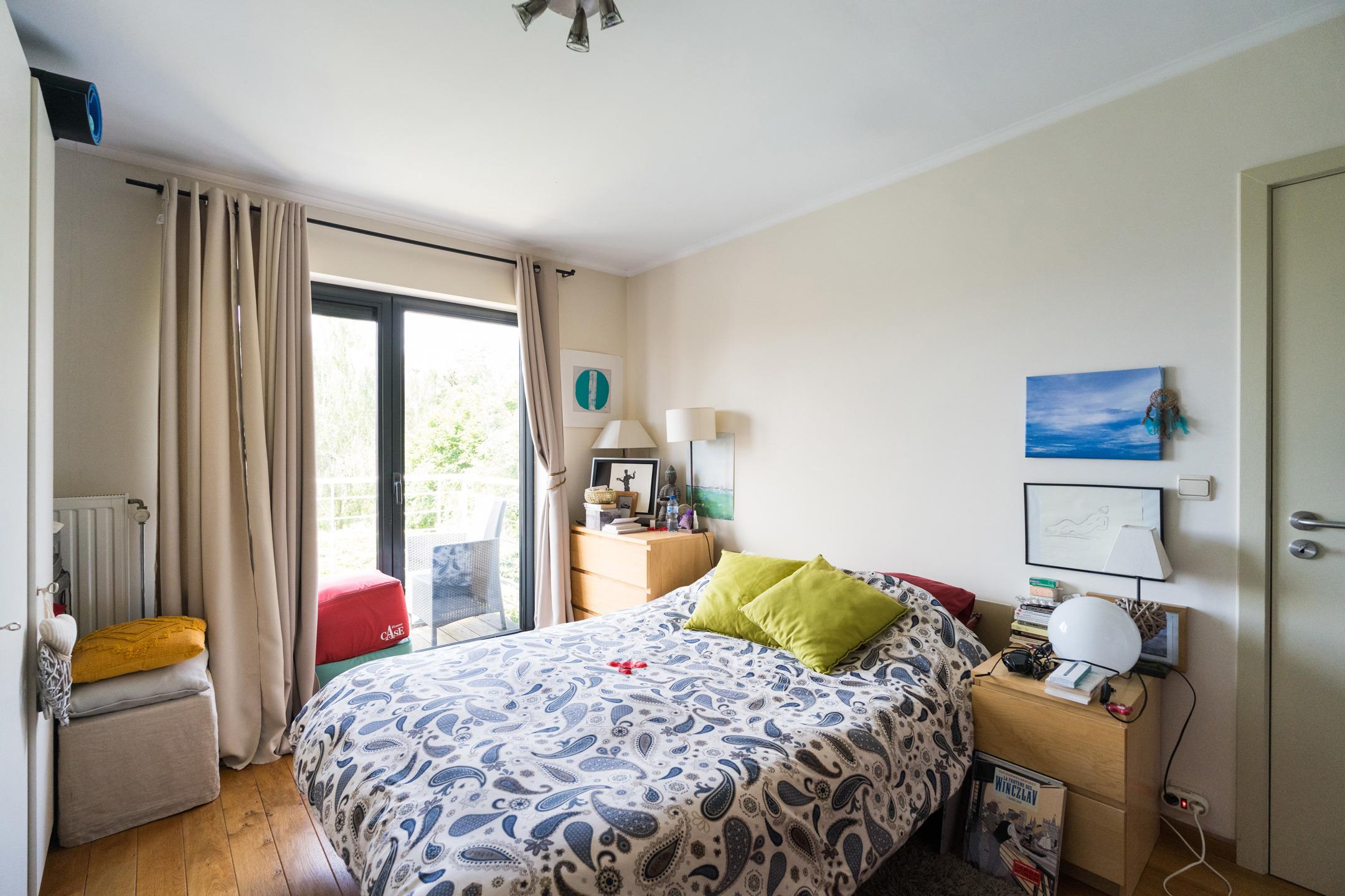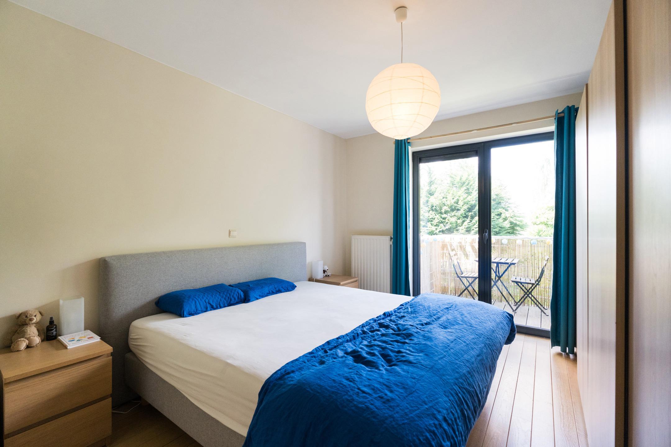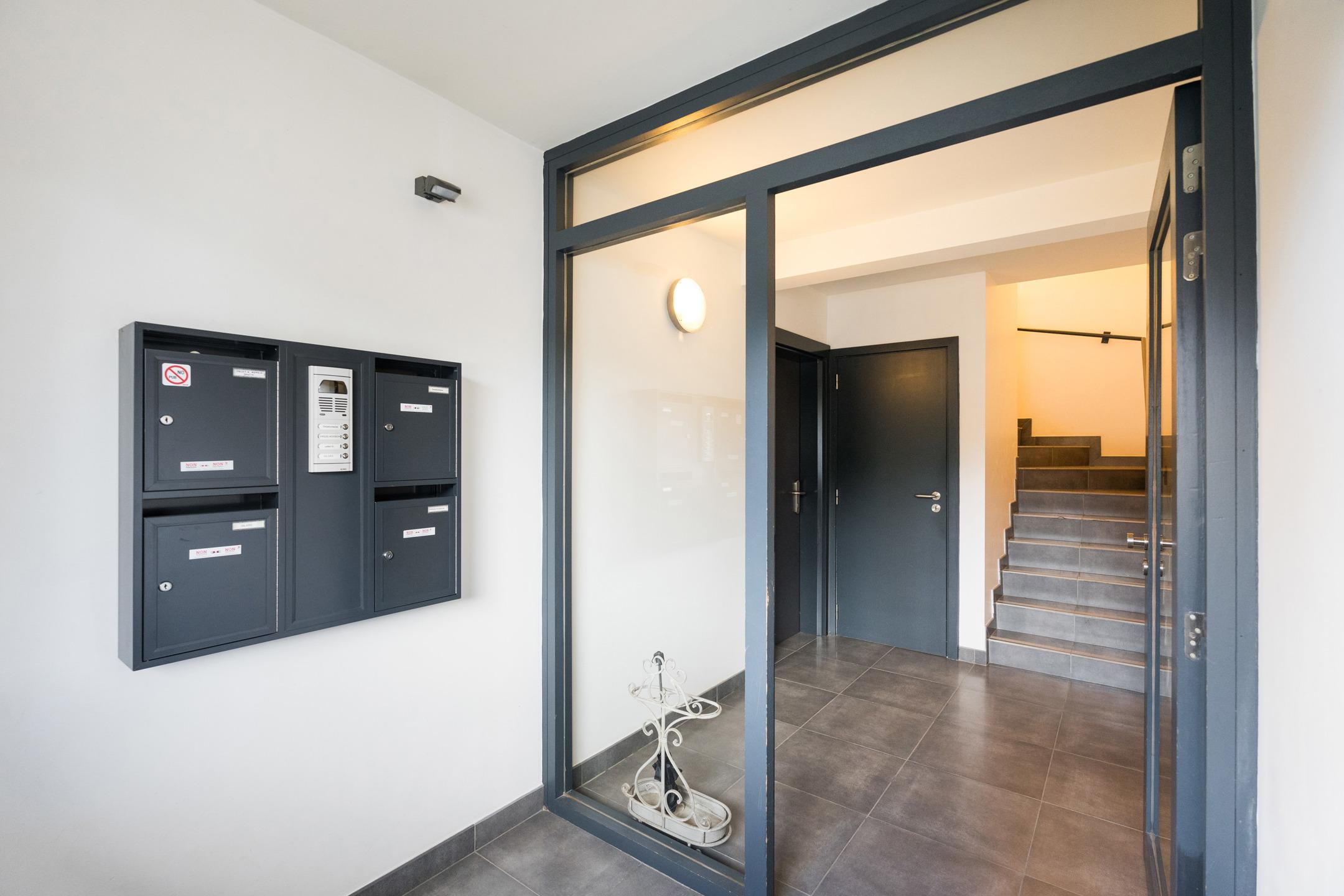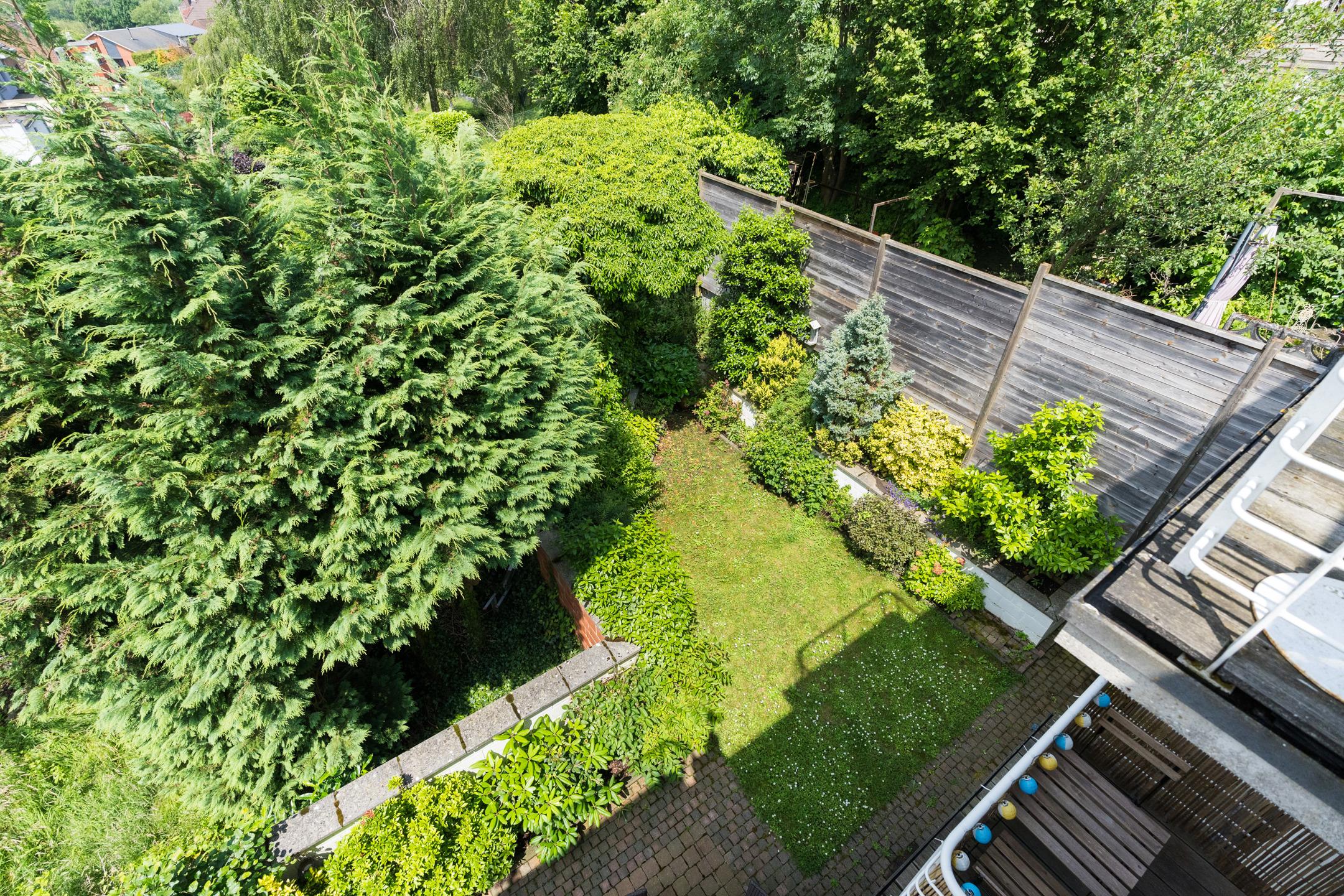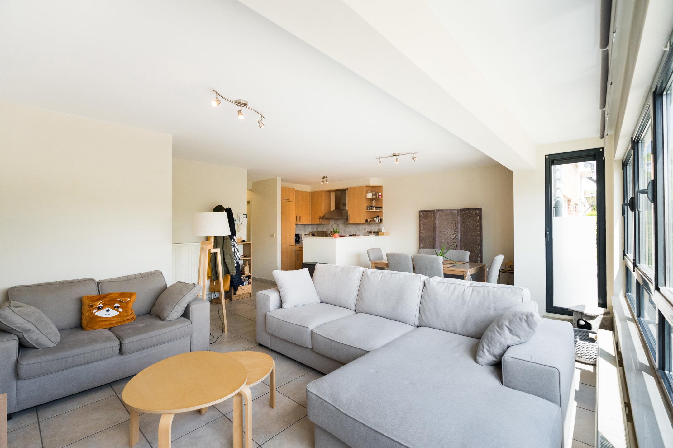 Appartement du rez-de-chaussée : Appartement de 2 chambres et une salle de bains, accès privatif au garage. A l’extérieur : terrasse de ± 37 m², jardin de ± 28 m². Cave et garage pour une voiture avec porte automatique. PEB C - 230 kWh/m².an (20230913008410).