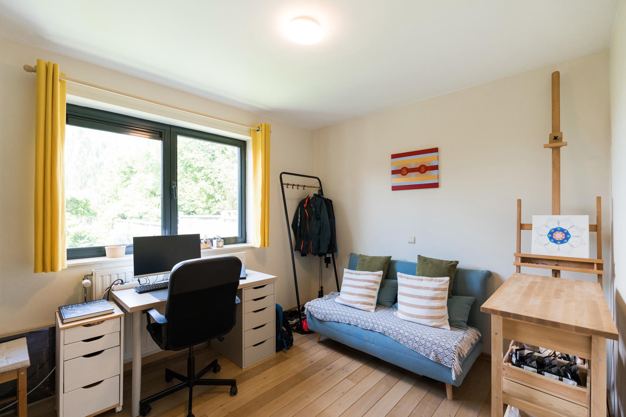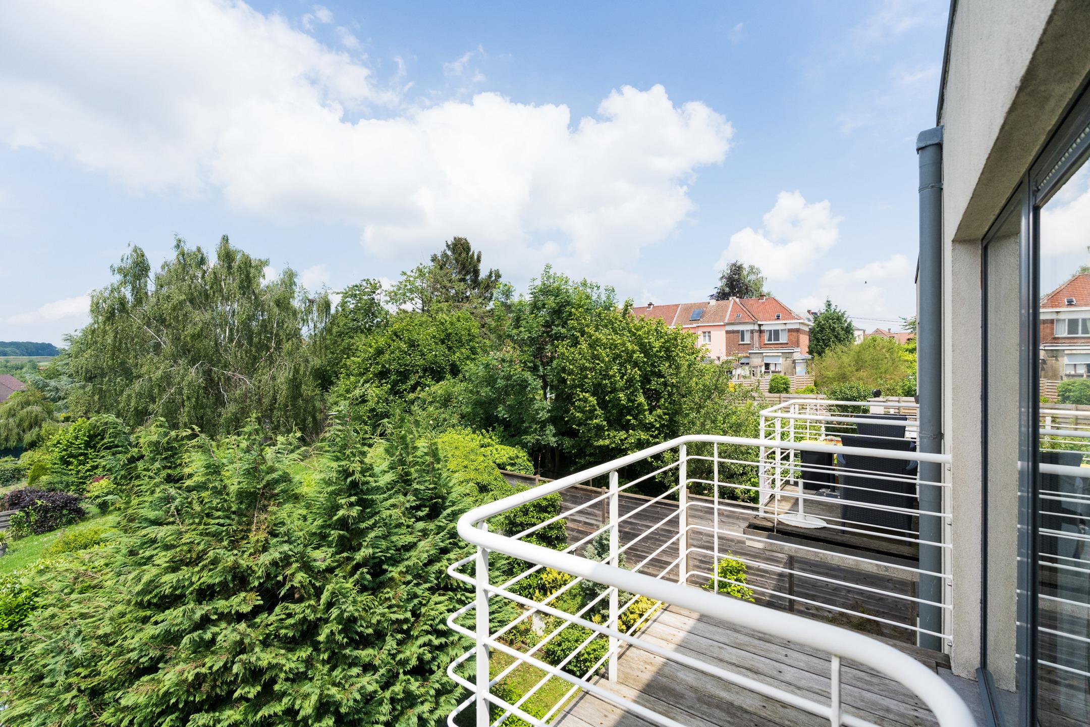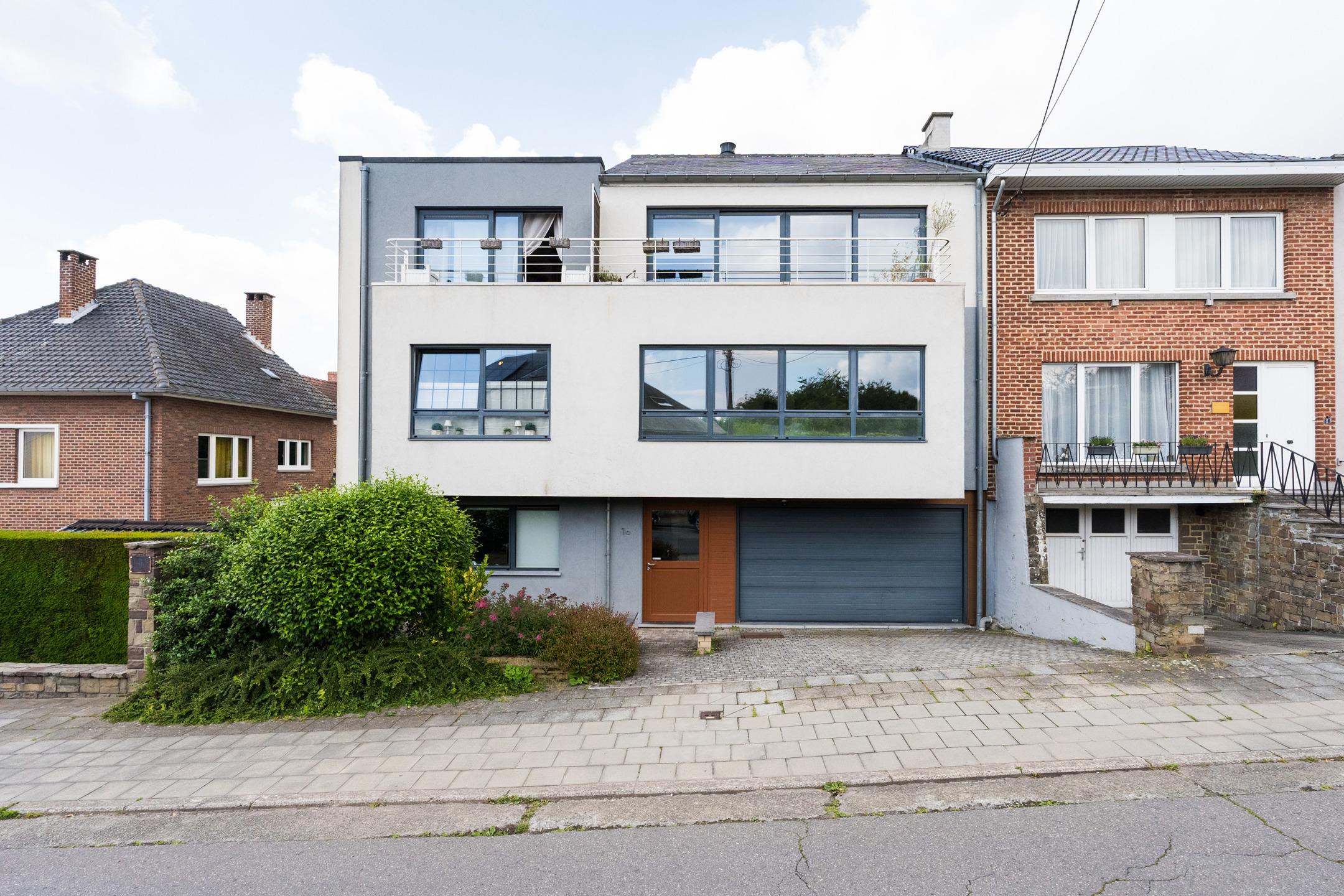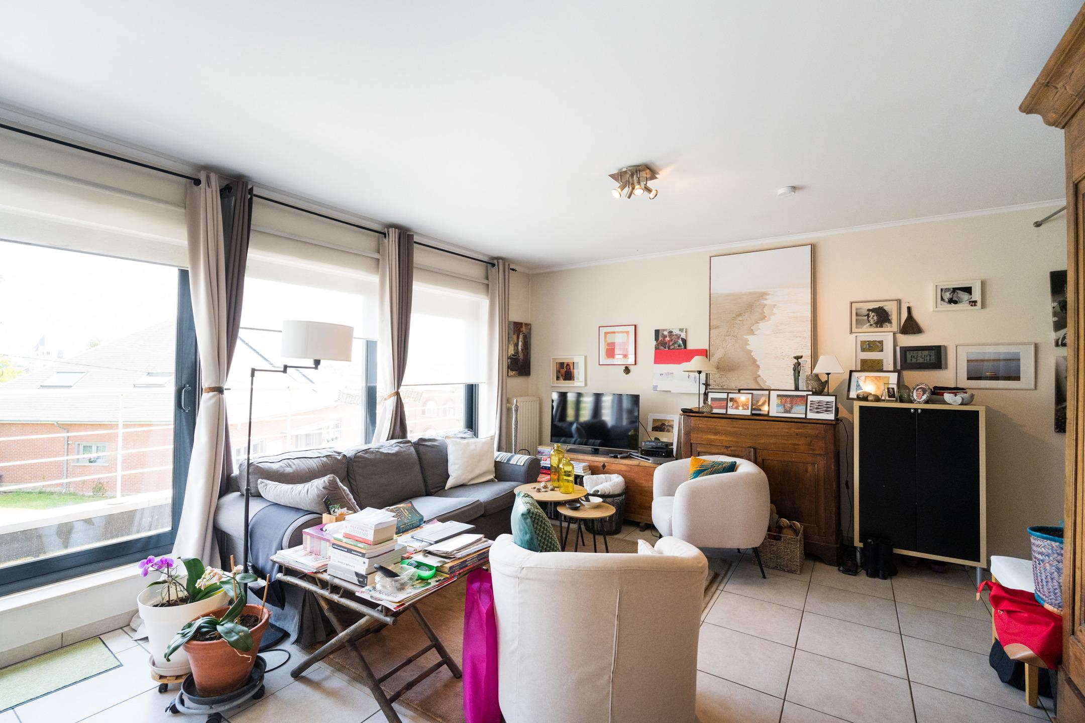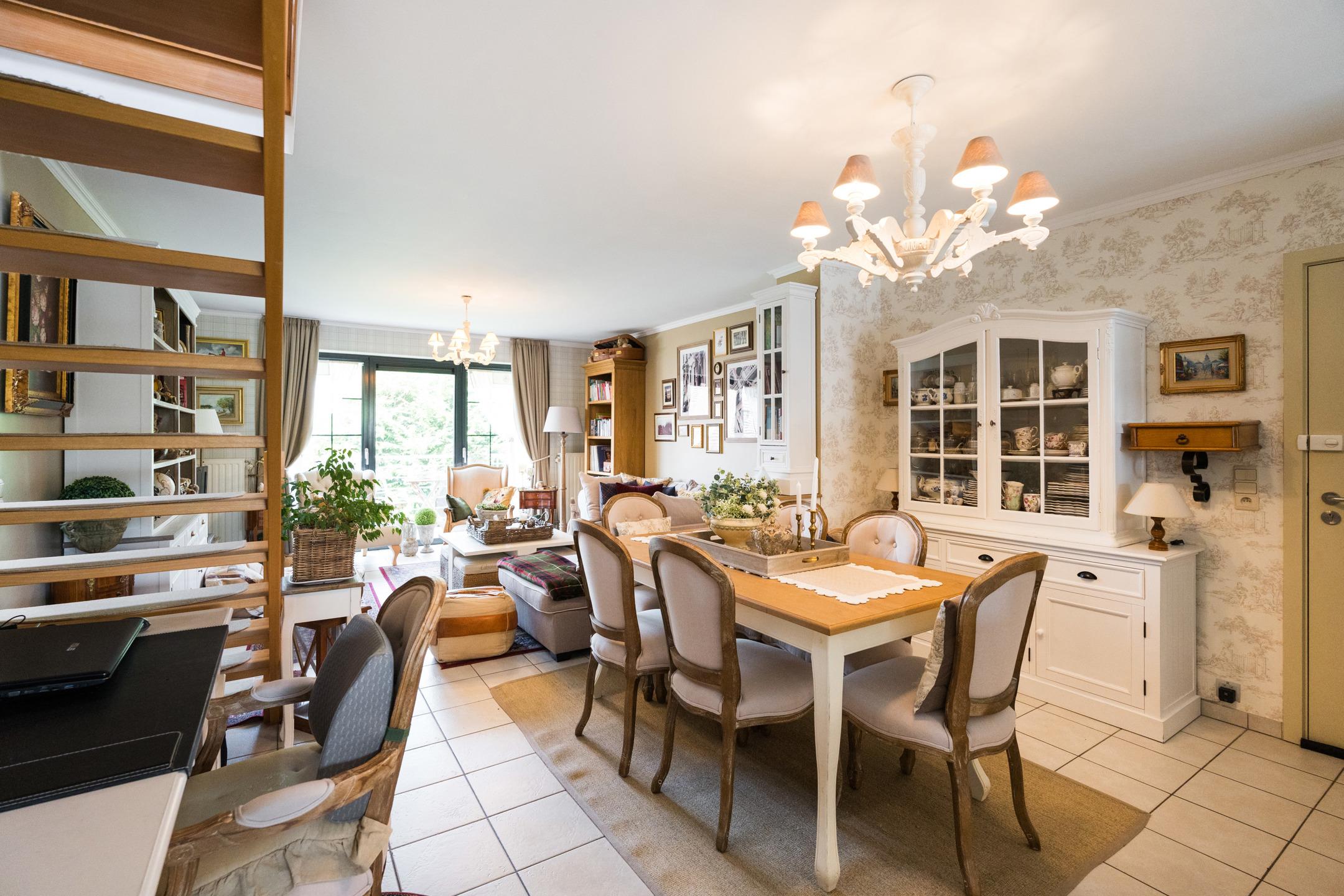 Appartement du rez-de-chaussée : Appartement de 2 chambres et une salle de bains, accès privatif au garage. A l’extérieur : terrasse de ± 37 m², jardin de ± 28 m². Cave et garage pour une voiture avec porte automatique. PEB C - 230 kWh/m².an (20230913008410).