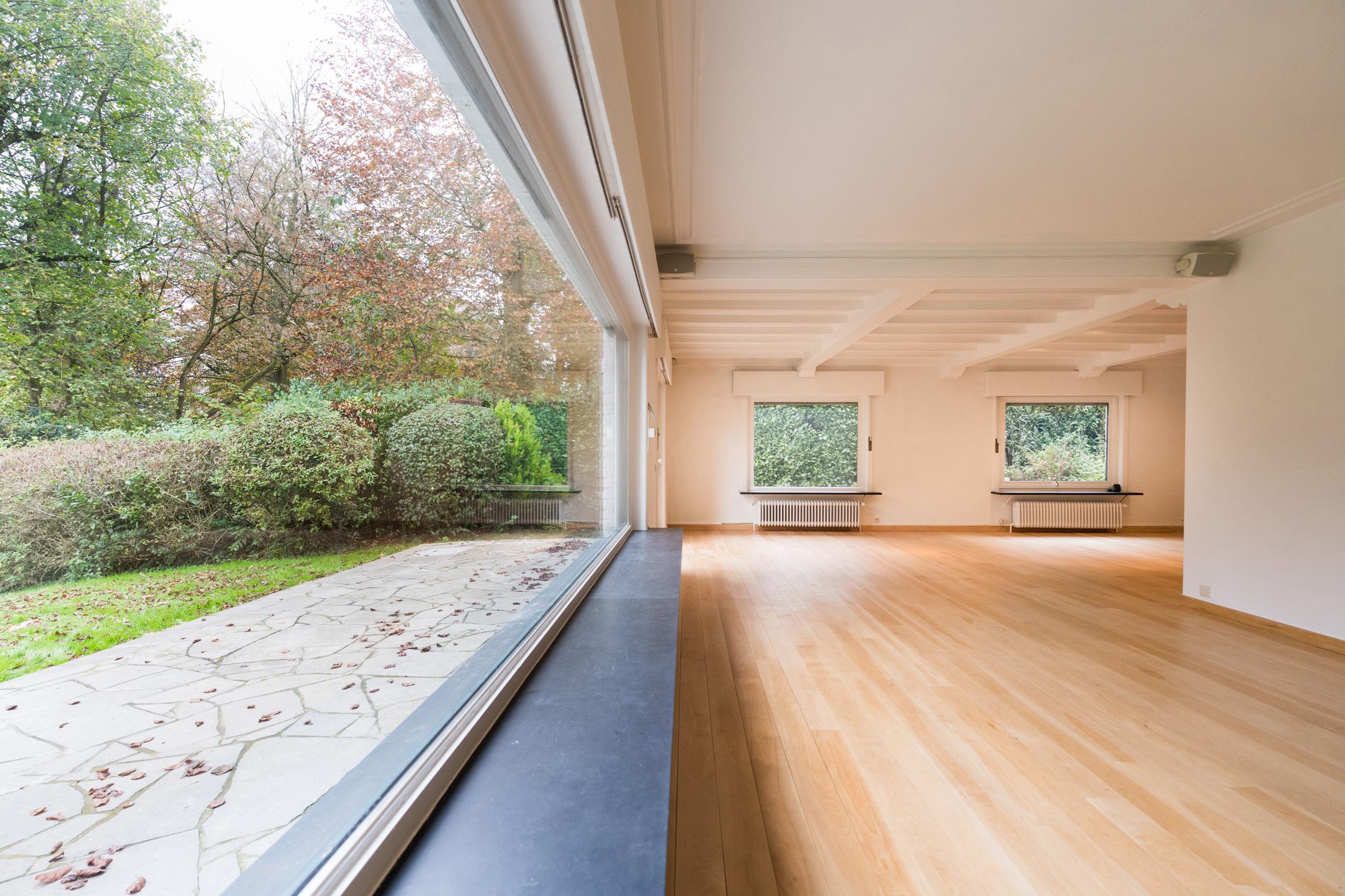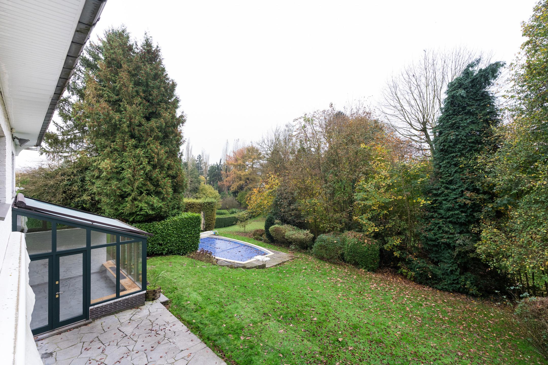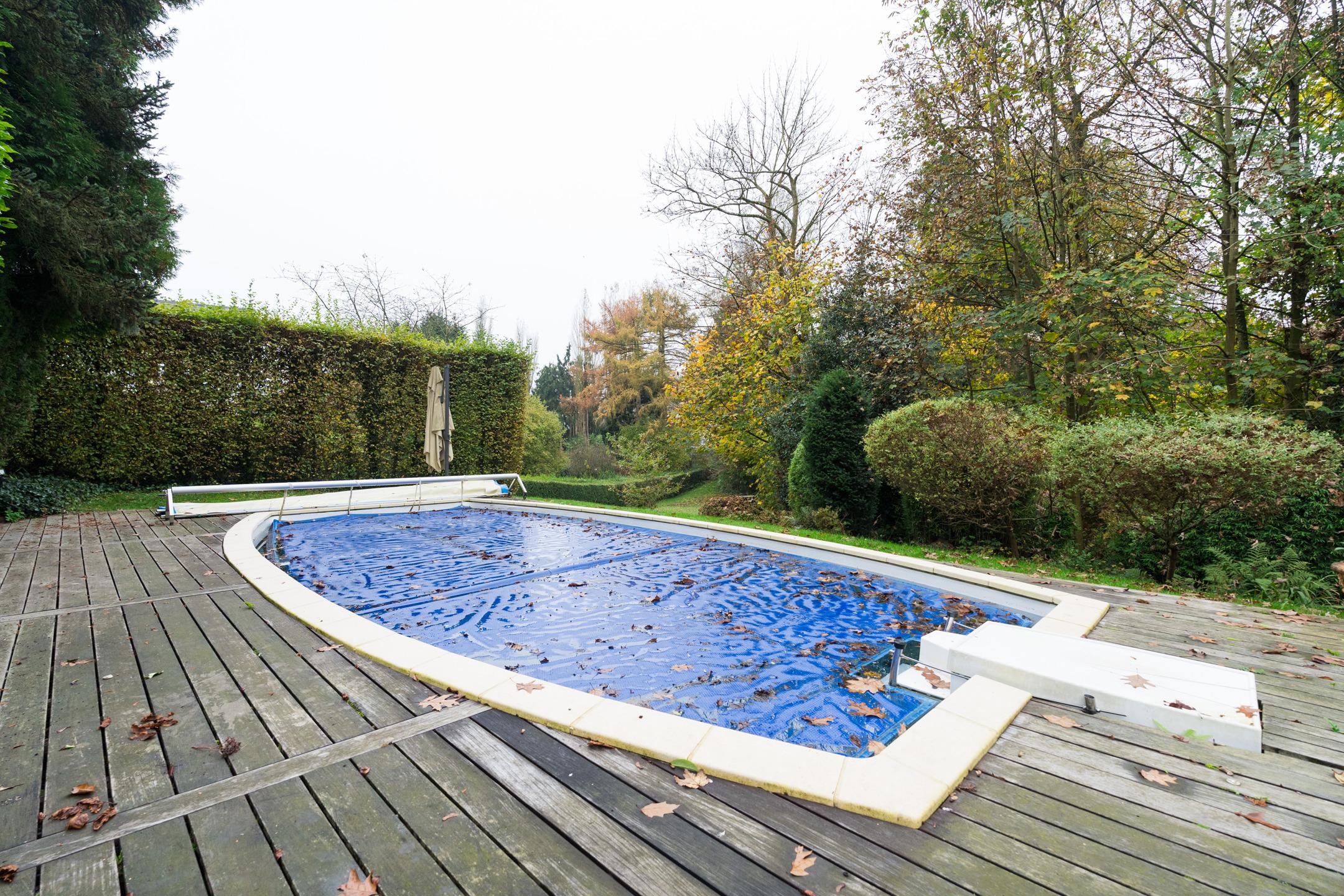 WATERLOO Faubourg, Magnifique VILLA (5CH/SDD/2SDB/BUREAU) des années 60 rénovée au fil des années offrant une agréable luminosité et de superbes volumes. Beau terrain légèrement vallonné de 21a19 (+ jouissance d’un terrain de +/- 8,7 ares appartenant à la cie des eaux), piscine extérieure et gd parking+allée privative. Bon état général. Au rez: Hall d’entrée spacieux, toilette invités, vestiaire, cagibi, cuisine équipée + jardin d’hiver pouvant servir de coin déjeuner (+ accès extérieur), bureau, grandes réceptions en plancher dont salle à manger et living avec feu ouvert, le tout donnant vers une gde terrasse et un beau jardin, cave rangement, cave à vins, et ancienne chaufferie. Au 1er:hall de nuit (parquet laminé) spacieux offrant un beau dégagement, 1ère chambre (master) en parquet bambou avec placards et salle de bains privative rénovée (+toilette), 2e chambre en parquet bambou avec placards, 3e chambre en parquet bambou + placards, 4e chambre en parquet bambou, toilette indépendante, 2e salle de bains, 5e chambre en parquet laminé avec salle de douches privative, garage 2 voit +portes auto ; chaudière gaz condensation neuve, boiler 2023, grenier rangement. Extérieurs, parking, jardin, allée, terrasse sud ouest, tente solaire, piscine chauffée via pompe à chaleur. Techniques :PEB D (2019)–Electricité conforme –chaudière gaz condensation 2024- ancienne citerne mazout à neutraliser-construction +/-1960, châssis double vitrage bois de 1997 – toiture en shingles d’origine.
