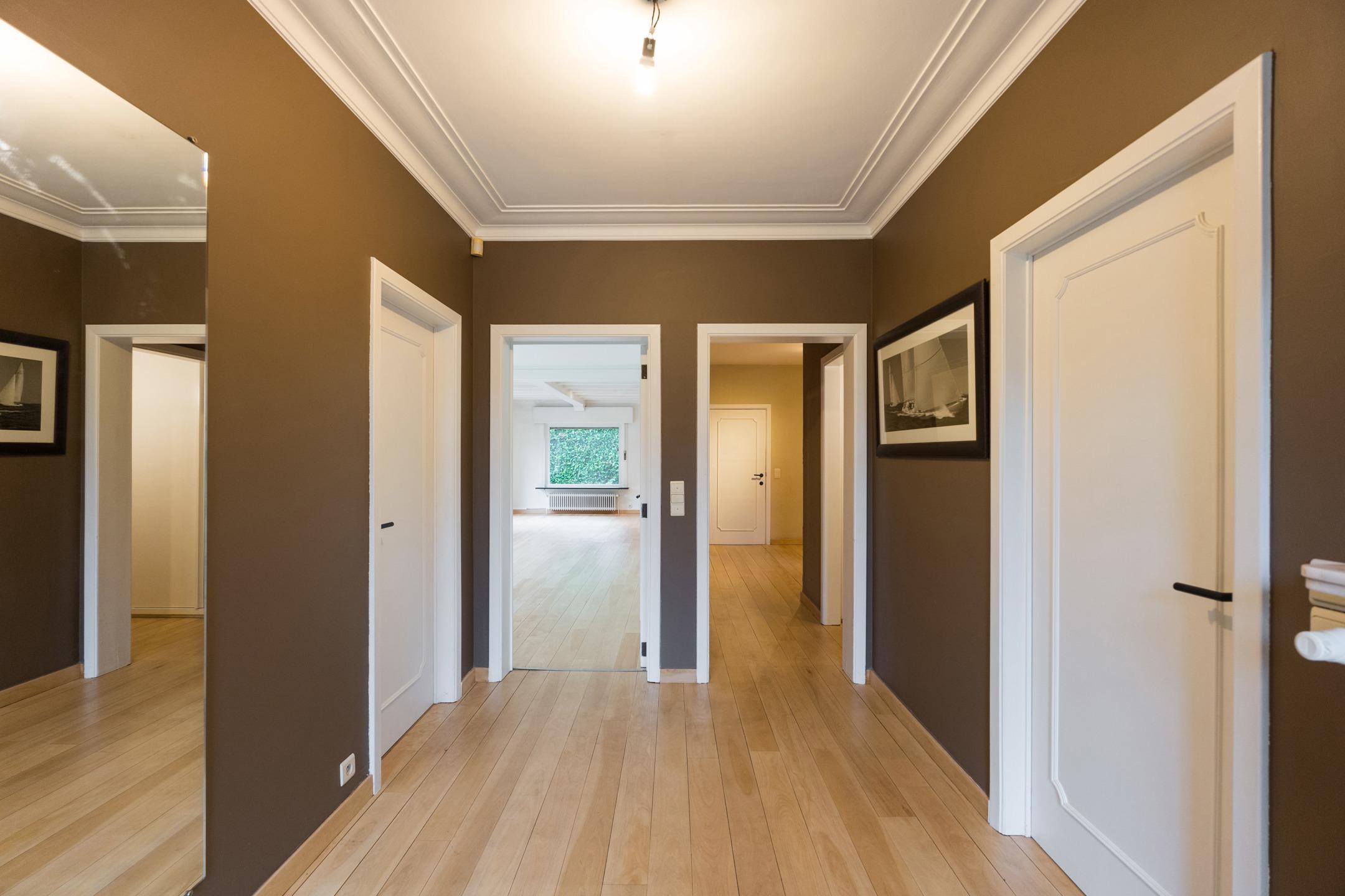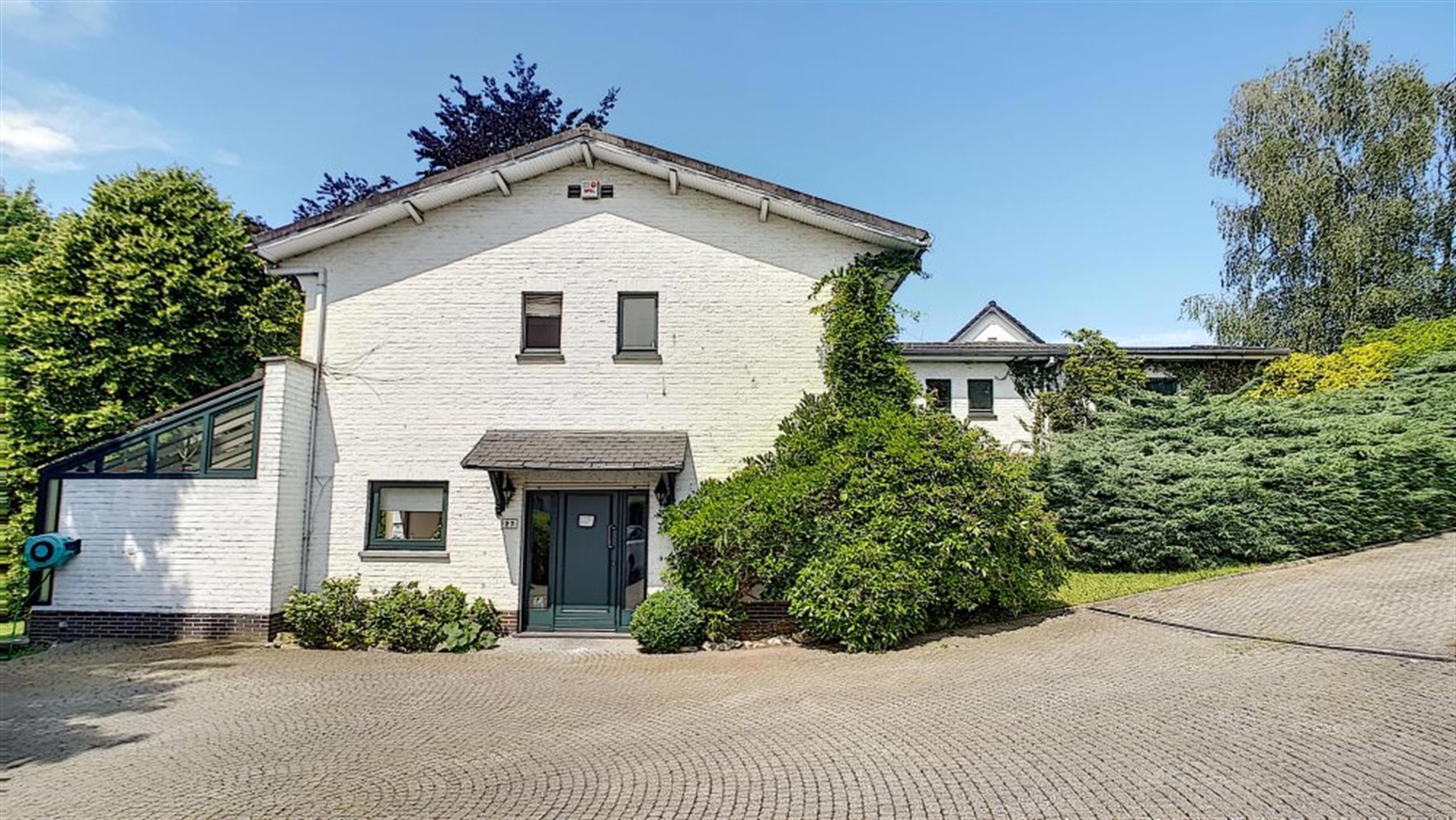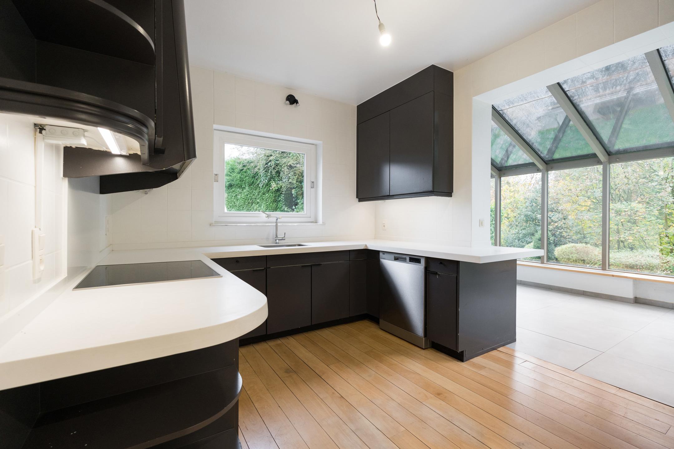 WATERLOO Faubourg, Magnifique VILLA (5CH/SDD/2SDB/BUREAU) des années 60 rénovée au fil des années offrant une agréable luminosité et de superbes volumes. Beau terrain légèrement vallonné de 21a19 (+ jouissance d’un terrain de +/- 8,7 ares appartenant à la cie des eaux), piscine extérieure et gd parking+allée privative. Bon état général. Au rez: Hall d’entrée spacieux, toilette invités, vestiaire, cagibi, cuisine équipée + jardin d’hiver pouvant servir de coin déjeuner (+ accès extérieur), bureau, grandes réceptions en plancher dont salle à manger et living avec feu ouvert, le tout donnant vers une gde terrasse et un beau jardin, cave rangement, cave à vins, et ancienne chaufferie. Au 1er:hall de nuit (parquet laminé) spacieux offrant un beau dégagement, 1ère chambre (master) en parquet bambou avec placards et salle de bains privative rénovée (+toilette), 2e chambre en parquet bambou avec placards, 3e chambre en parquet bambou + placards, 4e chambre en parquet bambou, toilette indépendante, 2e salle de bains, 5e chambre en parquet laminé avec salle de douches privative, garage 2 voit +portes auto ; chaudière gaz condensation neuve, boiler 2023, grenier rangement. Extérieurs, parking, jardin, allée, terrasse sud ouest, tente solaire, piscine chauffée via pompe à chaleur. Techniques :PEB D (2019)–Electricité conforme –chaudière gaz condensation 2024- ancienne citerne mazout à neutraliser-construction +/-1960, châssis double vitrage bois de 1997 – toiture en shingles d’origine.