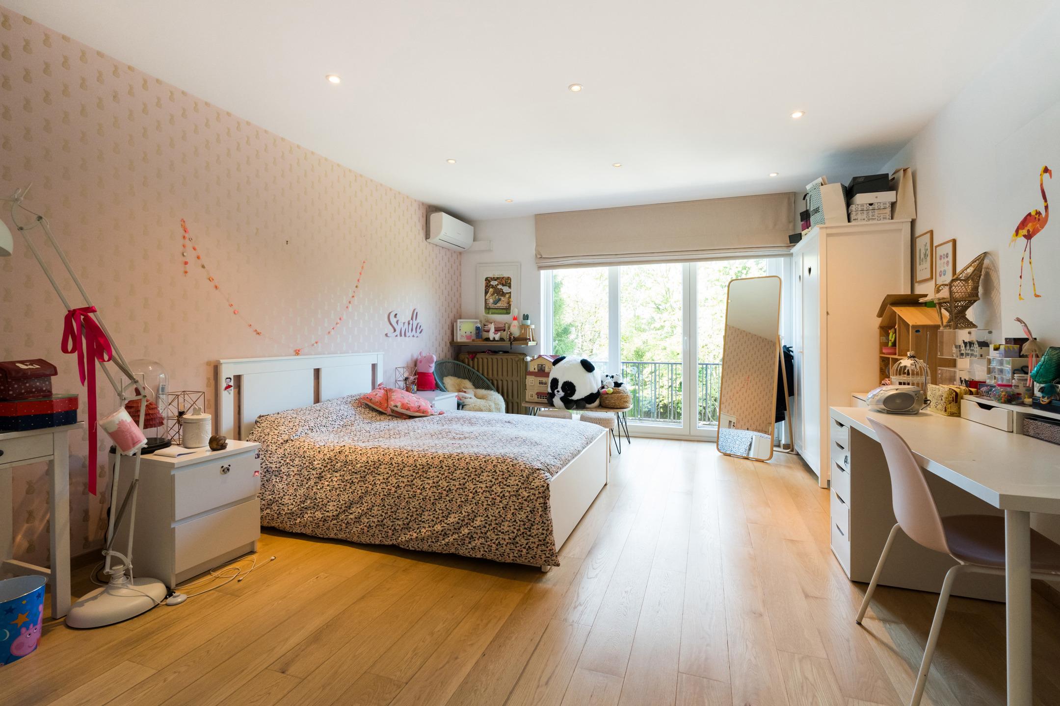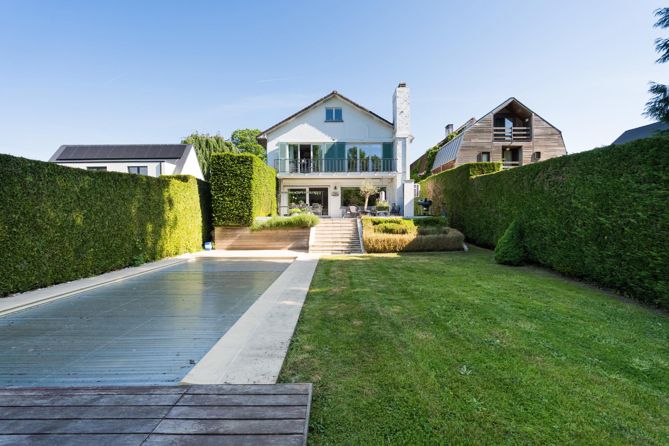 WATERLOO FAUBOURG, Ravissante VILLA pleine de charme (5CH/3SDB) sise au cœur d’une avenue recherchée. Villa rénovée en 2018 + améliorations ensuite. Terrain de 9 ares 19. Villa offrant de beaux volumes & une agréable luminosité. Très bon état général. Orientation plein sud. Au rez : Hall d’entrée en marbre, toilette, vestiaire, agréables réceptions dont salle à manger en plancher et living plein sud en plancher avec feu ouvert & coin bureau, le tout communiquant vers une belle terrasse et un jardin avec piscine, cuisine super équipée en carrelage avec coin déjeuner. Les extérieurs : Parking, terrasse sud avec tente solaire, jardin, éclairage ext, piscine chauffée extérieure avec volet solaire.Au 1er: Palier hall de nuit, 1ère chambre en plancher avec air-co (accès vers un balcon) et sdb privative, toilette indépendante, 2e chambre en plancher avec porte blindée et sdb privative, dressing ou 3e chambre en plancher, 4e chambre en plancher. Au 2ème: Hall de nuit, sdb, toilette, coin salon avec air-co, 5e chambre avec air-co. Sous-sol: Buanderie, garage 2voitures en enfilade, filtration piscine, chaufferie gaz de 2008, cave à vins. Techniques : Construction 1967, rénovation en 2018, Peb C – 218Kwh/m2/an, électricité non conforme, chauffage central au gaz, châssis double vitrage pvc de 2009 ou plus récent, toiture en tuiles, alarme, piscine en liner avec volet solaire, air-conditionné de 2018.Villa spacieuse pleine de charme idéalement située à découvrir sans plus attendre !