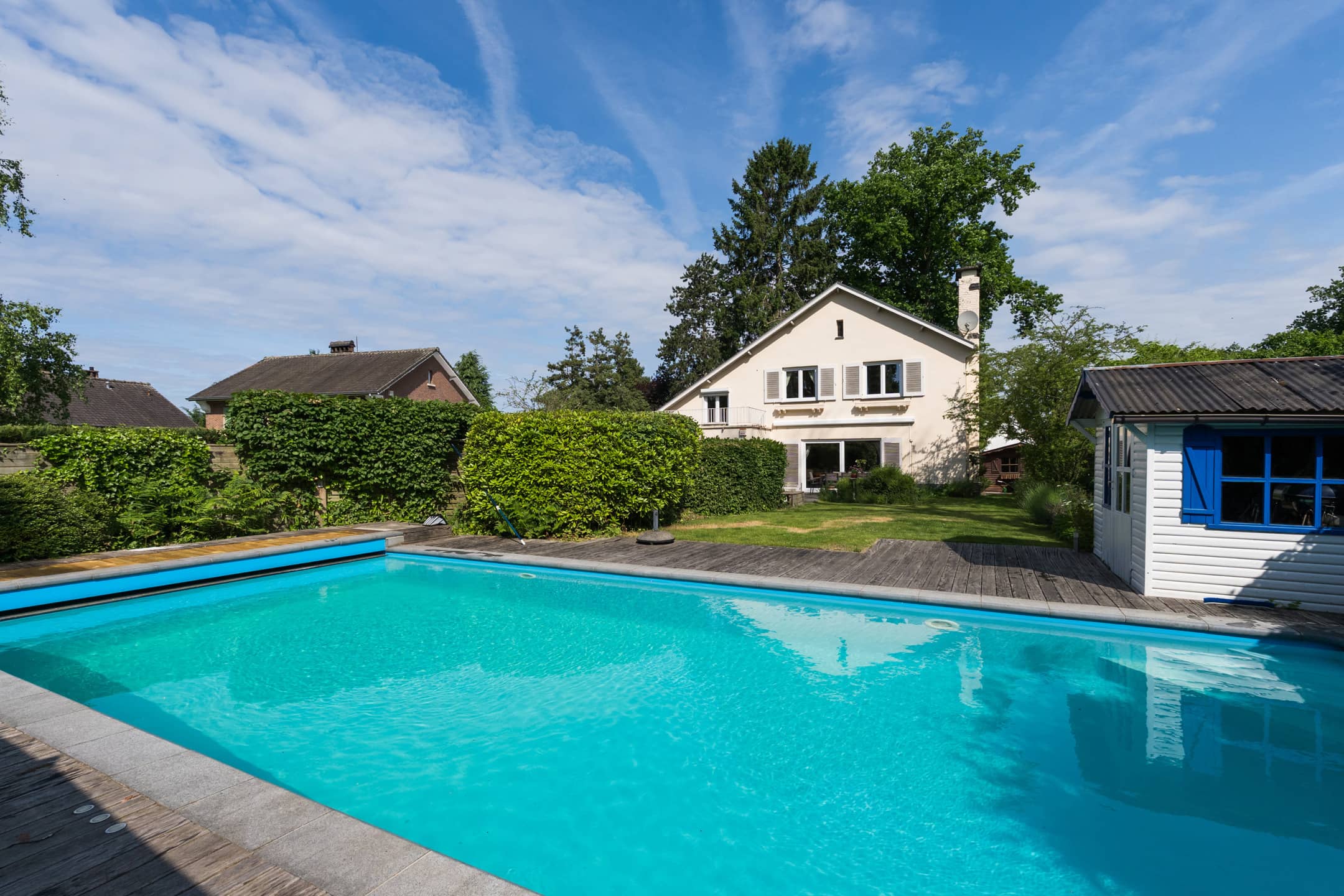 KRAAINEM, proche de la place Dumon, Magnifique VILLA (4ch/2sdb/bur) de +/- 275m² construits, sise en retrait, sur un terrain de +/- 7 ares orienté plein Sud avec piscine. Construite en 1954 et rénovée au cour du temps , elle se compose comme suit : Au Rez-de-chaussée : Hall d’entrée avec vestiaire et toilette, salon/salle à manger (feu ouvert, accès terrasse), cuisine super-équipée. Au 1er étage : Toilette séparée, salle de bain (baignoire, douche, lavabo), 4 chambres dont une avec salle de douche et Bureau. Grenier partiellement aménageable, Au sous-sol : Double garage (40m²) avec porte électrique, caves de rangements, chaufferie. PEB : E/489kW/m²/an. Electricité non conforme. Chaudière au gaz. A découvrir sans tarder chez L&P !