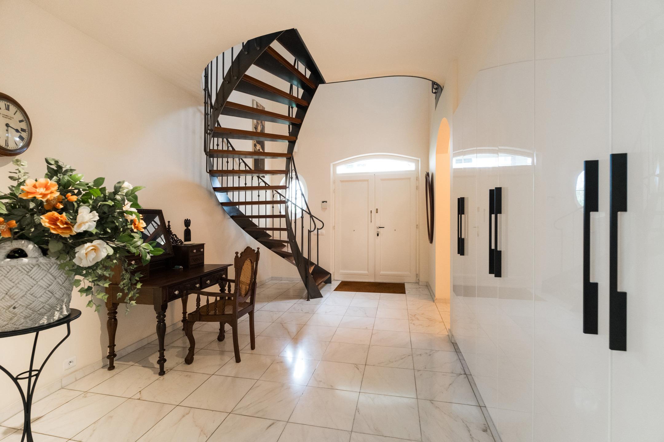 KRAAINEM - Situation exceptionnelle, à proximité de la Place Dumon et de toutes ses facilités, jolie VILLA (5ch/3sdb/bur.) de ± 440m² construits sise sur un terrain de 16ares95ca. Construite en 1992 et très bien entretenue, la maison se compose au rez-de-chaussée d’un spacieux hall d'entrée avec grand vestiaire et toilette invités, lumineux living (±65m²) avec feu ouvert et donnant accès à deux terrasses (Nord-Est et Sud-Ouest) et au jardin joliment arboré et agrémenté d’un petit étang, un espace bureau/bibliothèque (±13,5m²), cuisine avec coin à déjeuner et arrière cuisine. Au premier étage: dégagement d'escalier, 4 chambres (±17,5m², 15m², 11,5m² et 11m²) dont une avec mezzanine, 2 salles de douche, chambre parentale (±20,5m²) avec placards et salle de bains attenante. Grenier. Au sous-sol: garage pour 4 voitures (±115m²), cave à vins, cave de rangement et atelier. Chaudière au gaz Viessmann (2014) – électricité non-conforme - PEB:B (181 kwh/m²/an) - Visitez ce bien en vidéo : https://youtu.be/jv3JHyV-bOs