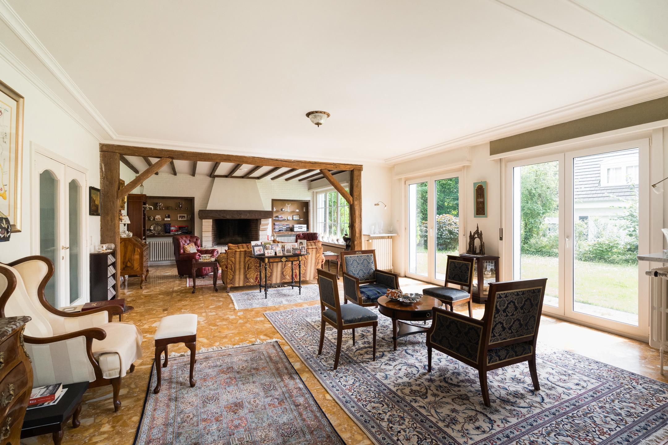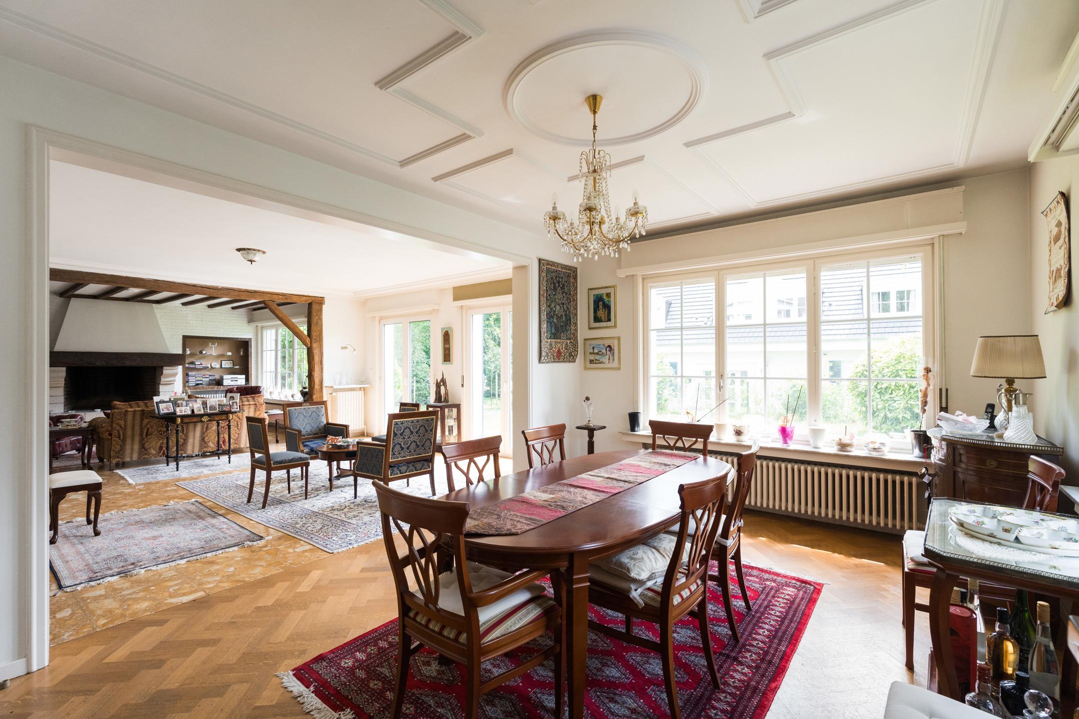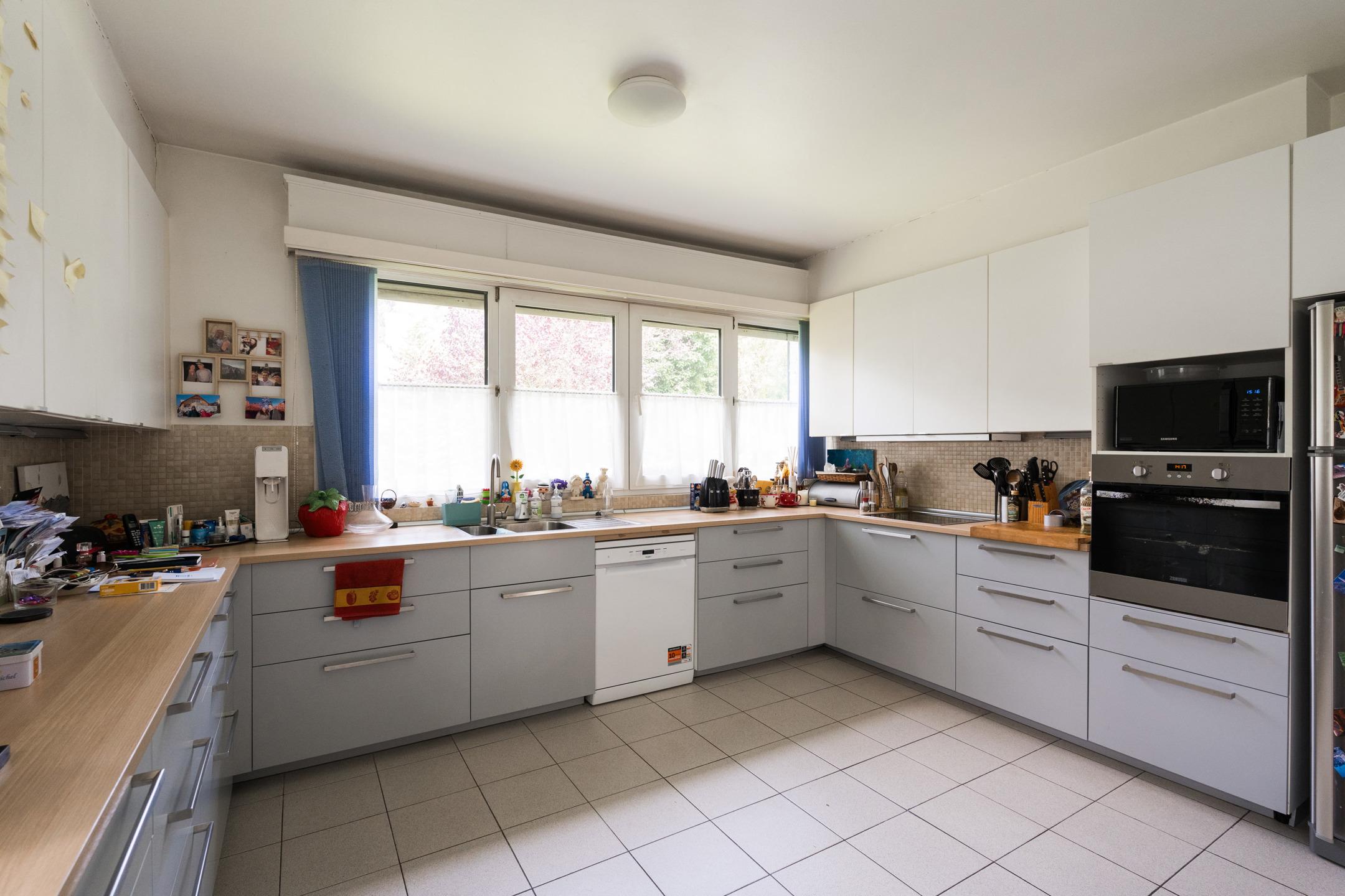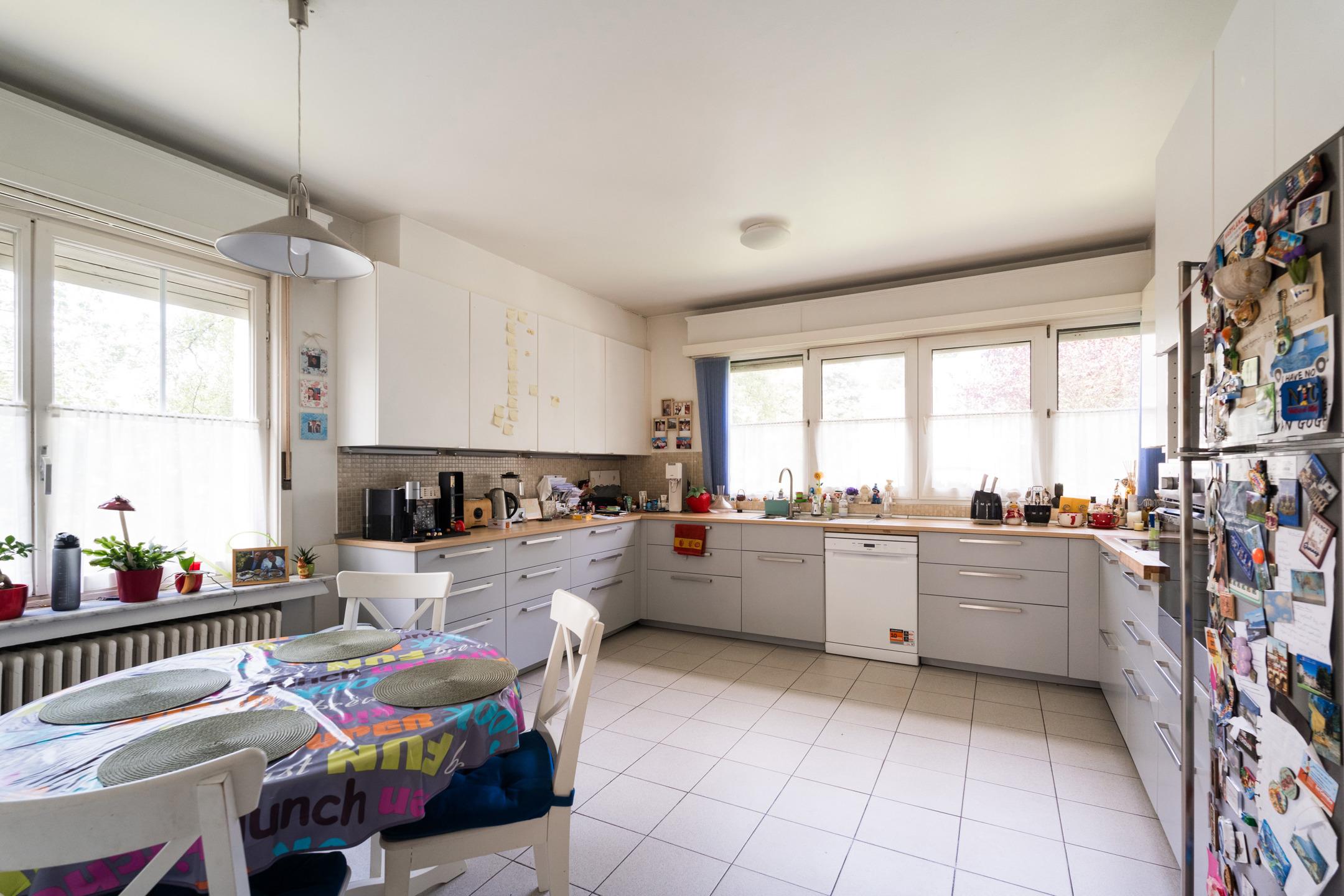 KRAAINEM, dans un quartier résidentiel à proximité immédiate de la place Dumon, jolie VILLA (5ch/3sdb/bureau) de ±400m² construits sur un terrain de 8 ares orienté Sud-Ouest. Elle se compose comme suit: hall d'entrée, espace vestiaire avec toilette invités, bureau, cuisine équipée avec coin à déjeuner, spacieux living avec feu ouvert et accès à une terrasse orientée Sud-Ouest. A l'étage, hall de nuit, espace parental avec chambre et salle de bains en suite, 4 autres chambres, une salle de bains, une salle de douche et une toilette séparée. Grenier. Au sous-sol: Grand garage pour 2 voitures avec espace buanderie, cave à vins, cave à provisions et chaufferie. PEB: E/412 kWh/m²/an - Electricité non conforme. Visitez ce bien en vidéo : https://youtu.be/oE2j5U3mhS8 - Un bien idéalement situé à remettre aux goûts du jour en exclusivité chez L&P!