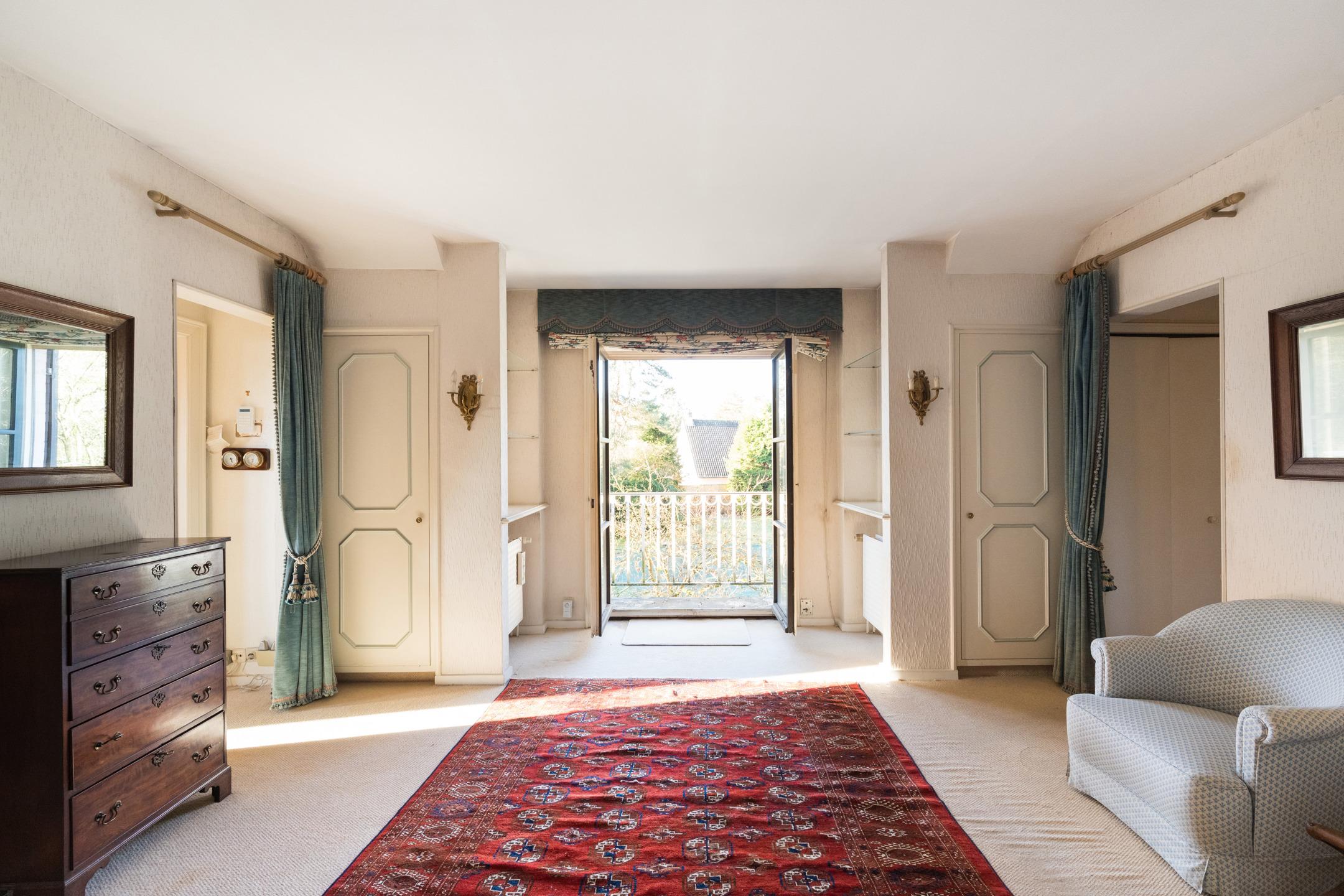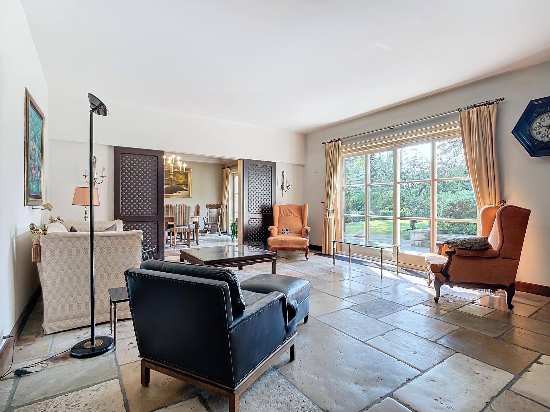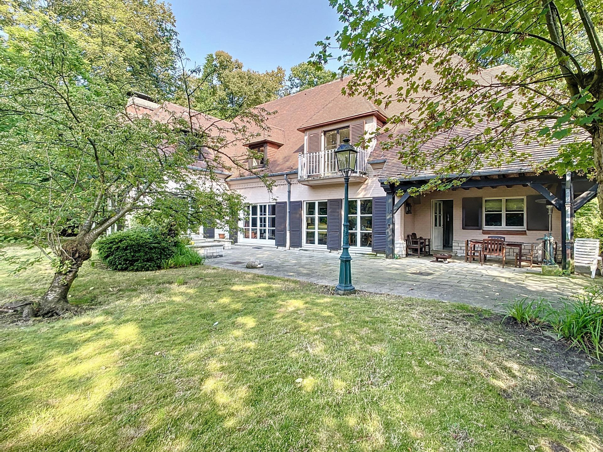 KRAAINEM - Limite TERVUREN - Splendide villa de charme (4-5ch/3sdb/bur) d'une superficie totale de +/- 775 m² dont +/- 540 m² habitables. Cette propriété se trouve dans le quartier résidentiel très prisé et calme de BECHET, à distance immédiate de la Forêt de Soignes, des transports en commun et du Royal Golf Club Ravenstein. Construite en 1979 avec des matériaux de haute qualité par des architectes de renom Brunswyck & Wathelet, sur un terrain de +/- 28,6 ares orienté SUD/OUEST, cette villa est idéale pour une vie de famille et pour l'organisation de réceptions. Elle s'agence comme suit : Au rez-de-chaussée : vaste hall d'entrée, vestiaire, WC visiteurs, 2 salons dont un avec cheminée, salle à manger, spacieuse cuisine équipée. Toutes les pièces de vie offrent une vue et un accès direct au jardin et à la piscine. Un grand bureau et la possibilité de créer une salle de bains supplémentaire dans la pièce adjacente complètent cet étage. Au 1er étage: 4 chambres, spacieux studio à aménager (avec feu ouvert et petit balcon) pouvant être scindé pour créer des chambres supplémentaires, 3 salles bains/douches et sauna. Nombreuses caves dont une avec une salle de bains d'appoint. Grenier aménageable. Garage 3 voitures et parking extérieur 4 / 5 voitures. PEB D : 304 kWh/m²/an. Libre à l'acte. RU en cours.