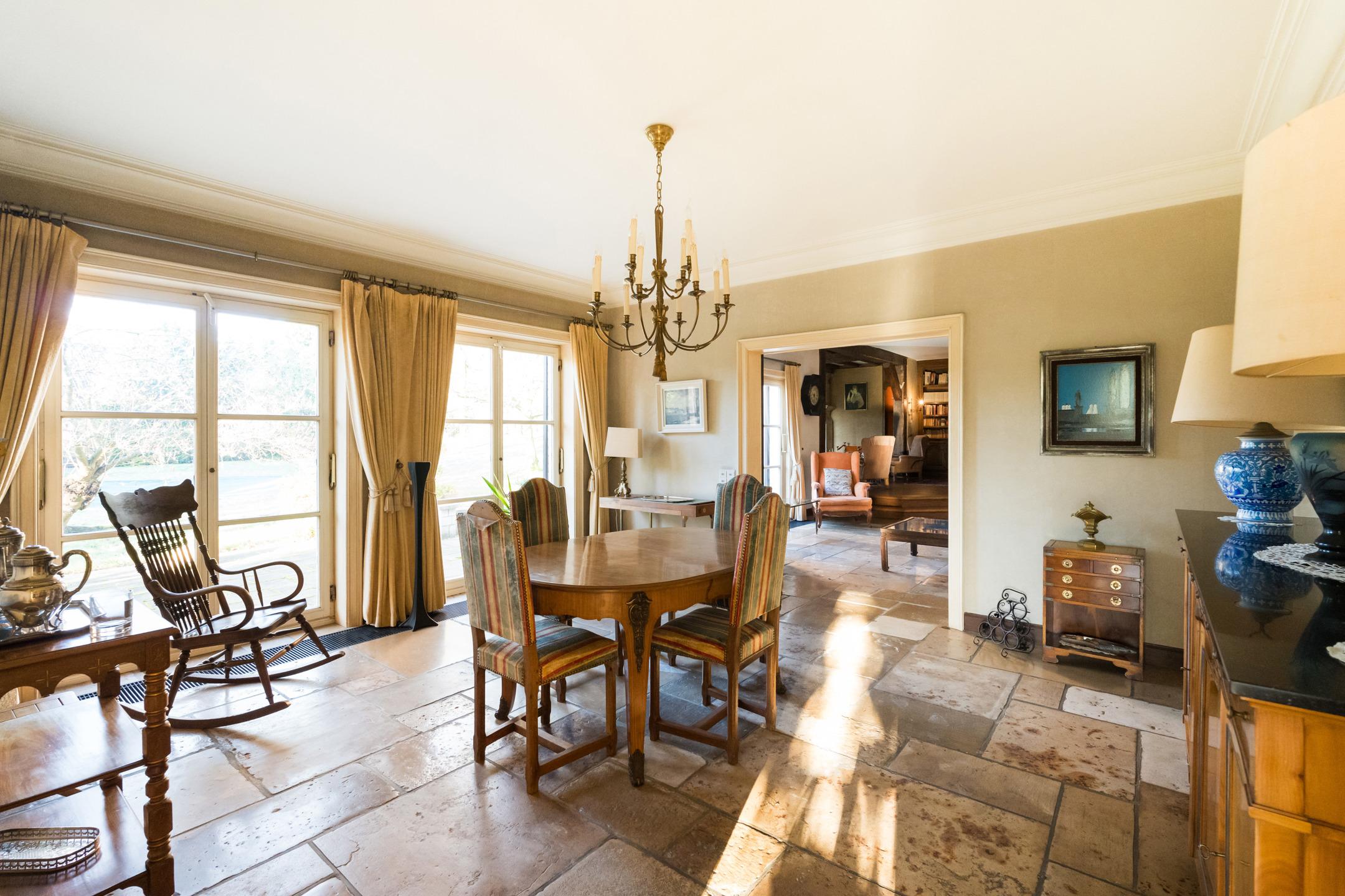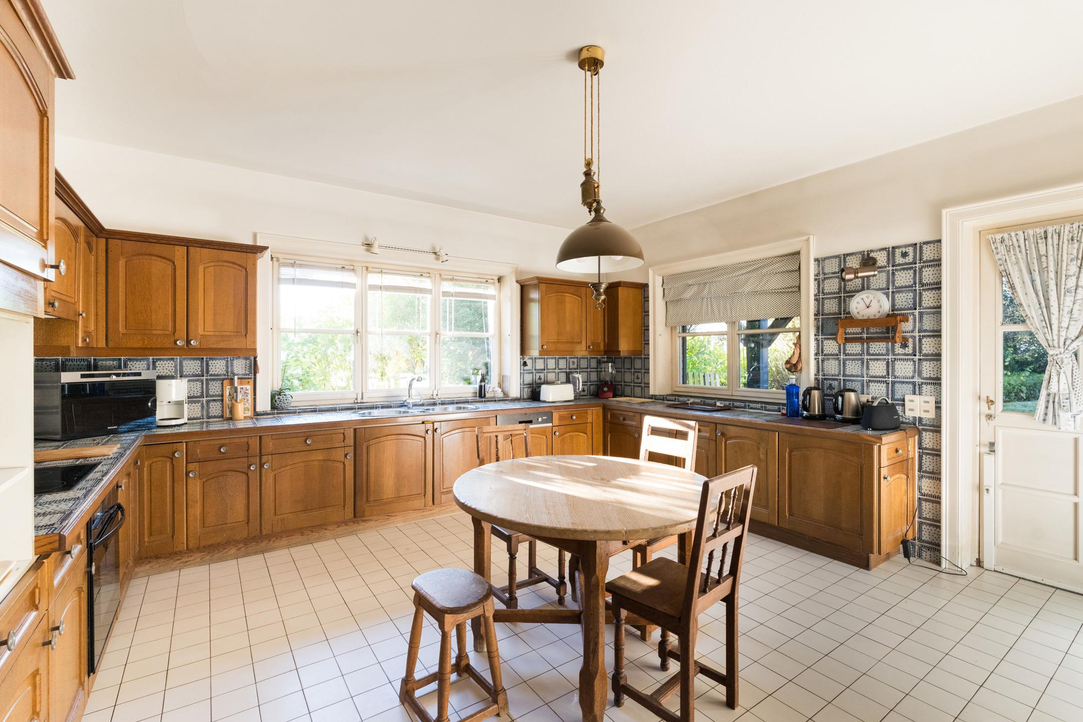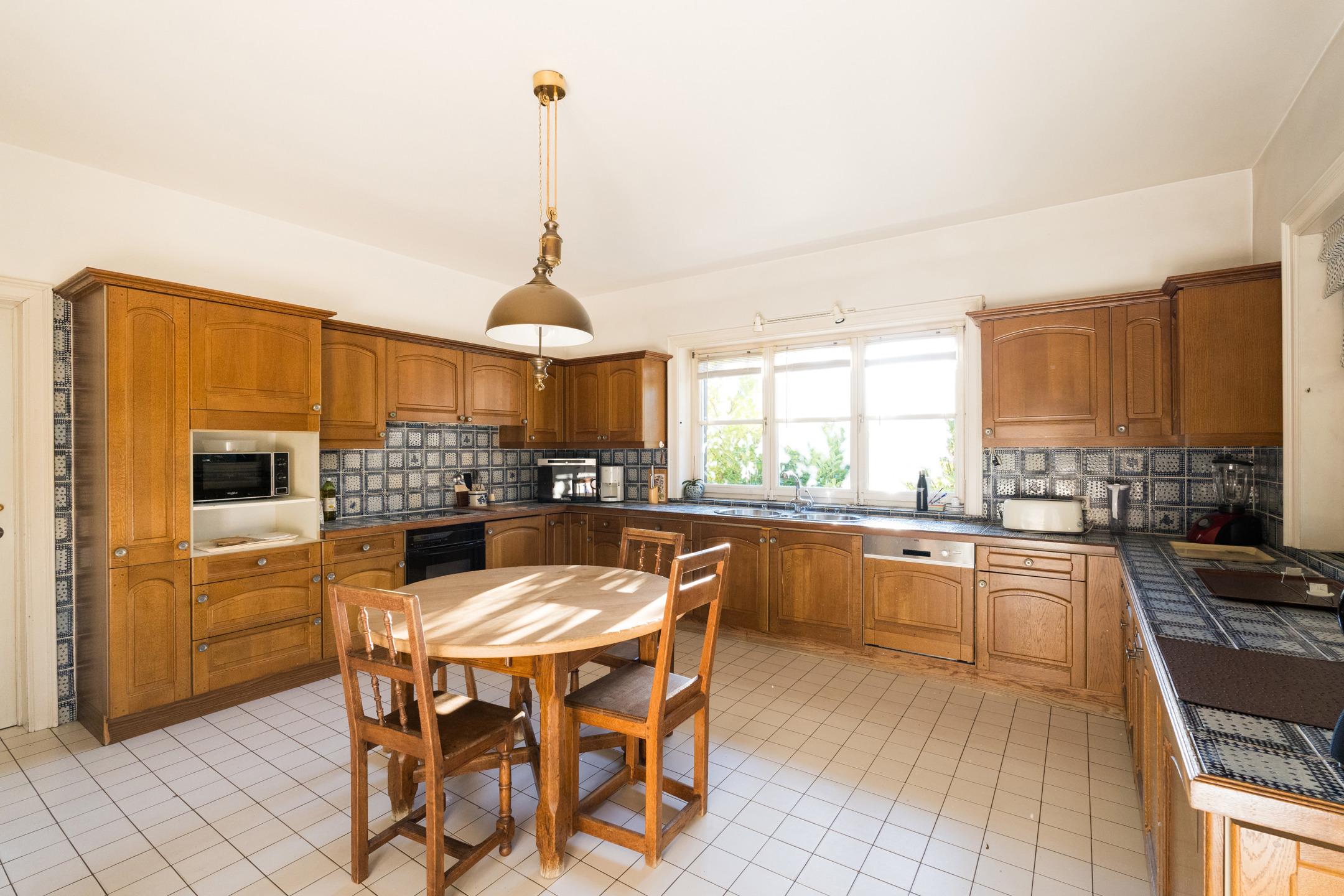 KRAAINEM - Limite TERVUREN - Splendide villa de charme (4-5ch/3sdb/bur) d'une superficie totale de +/- 775 m² dont +/- 540 m² habitables. Cette propriété se trouve dans le quartier résidentiel très prisé et calme de BECHET, à distance immédiate de la Forêt de Soignes, des transports en commun et du Royal Golf Club Ravenstein. Construite en 1979 avec des matériaux de haute qualité par des architectes de renom Brunswyck & Wathelet, sur un terrain de +/- 28,6 ares orienté SUD/OUEST, cette villa est idéale pour une vie de famille et pour l'organisation de réceptions. Elle s'agence comme suit : Au rez-de-chaussée : vaste hall d'entrée, vestiaire, WC visiteurs, 2 salons dont un avec cheminée, salle à manger, spacieuse cuisine équipée. Toutes les pièces de vie offrent une vue et un accès direct au jardin et à la piscine. Un grand bureau et la possibilité de créer une salle de bains supplémentaire dans la pièce adjacente complètent cet étage. Au 1er étage: 4 chambres, spacieux studio à aménager (avec feu ouvert et petit balcon) pouvant être scindé pour créer des chambres supplémentaires, 3 salles bains/douches et sauna. Nombreuses caves dont une avec une salle de bains d'appoint. Grenier aménageable. Garage 3 voitures et parking extérieur 4 / 5 voitures. PEB D : 304 kWh/m²/an. Libre à l'acte. RU en cours.