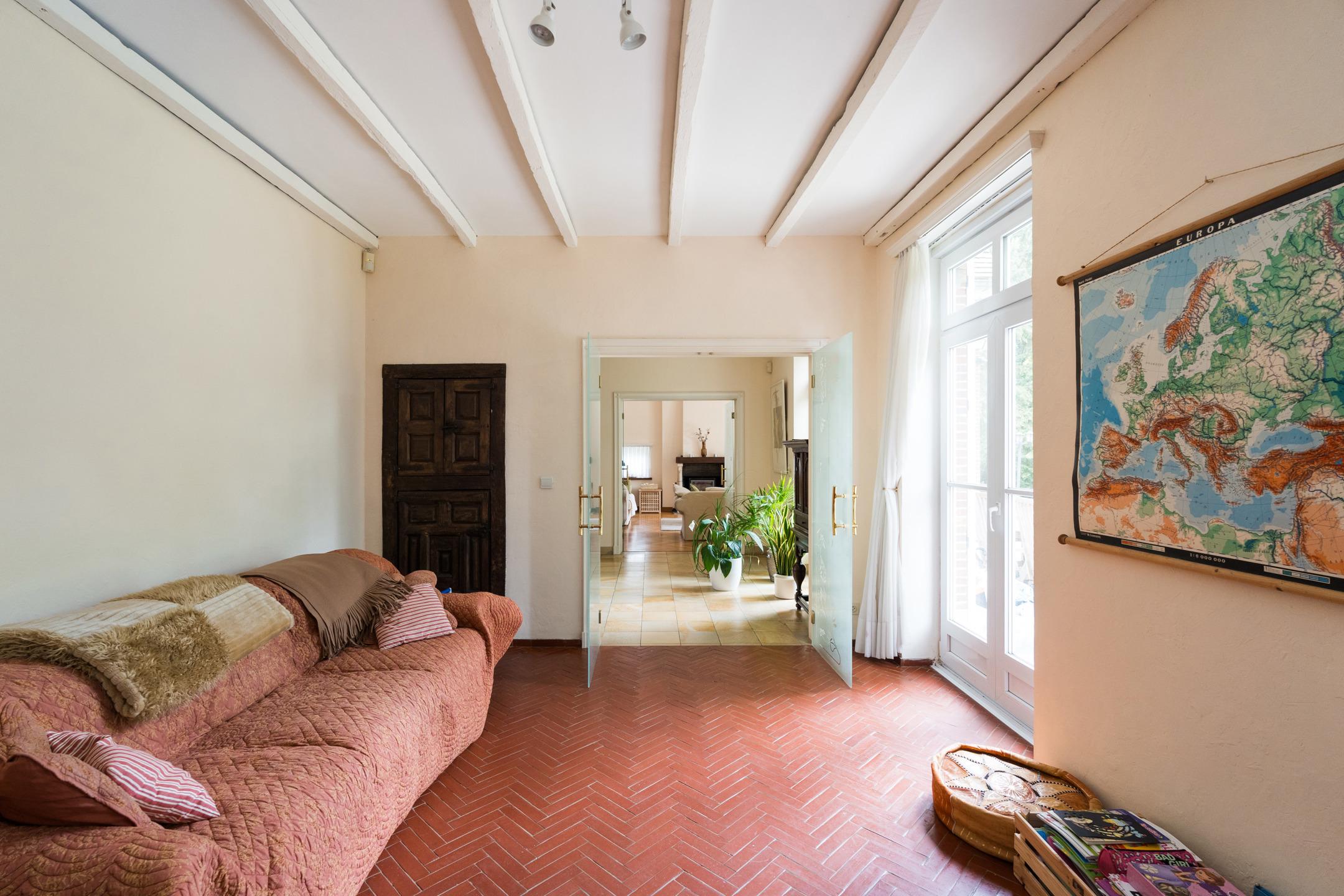OPTION // KRAAINEM, à proximité de la Place Dumon, sur la prestigieuse avenue Baron d’Huart, VILLA (6Ch/1Bur/2Sdb) de +/- 421m² construits sise sur un terrain de 11 ares 22 orienté Sud-Ouest. Elle se compose au rez-de-chaussée, d'un hall d'entrée, un espace vestiaire avec toilette invités, une cuisine super-équipée avec entrée de service (12,5m²), une belle salle à mange (20m²), un bureau (18,5m²) et un grand salon (28,5m²) avec cassette et accès au jardin. Au 1er étage, 3 chambres (11 - 14 - 14,5m²) chambre parentale (27m²) avec placards et balcon, salle de bains en suite (baignoire, douche, wc, lavabo), salle de bains (baignoire/douche, 2 lavabos), toilette séparée. Au 2e étage, grenier aménagé en 2 chambres (17 et 13m²) dont une avec lavabo. Au sous-sol, une buanderie, un garage 2 voitures (46m²), une cave à vin, une chaufferie, un débarras. Chaudière au mazout VIESSMANN (2008), électricité non-conforme, PEB: B (191 kWh/m²/an). A découvrir sans plus attendre chez L&P!