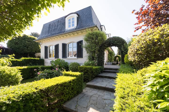 OVERIJSE (JESUS-EIK), dans une rue calme du quartier Marnix à la lisière de la Forêt de Soignes, VILLA (4Ch/1Bur/2Sdb) de +/- 270m² construits sise sur un terrain de +/- 10 ares 75 orienté plein Sud-Ouest. Elle se compose au rez-de-chaussée d'un hall d'entrée, une toilette invités, une cuisine super-équipée (2006) de 12,5m², avec coin déjeuner de 10,5m² et accès à la terrasse, salle à manger de 19m², salon de 30m² avec feu ouvert, garage box de 28m². Au 1er étage un bureau de 7m², 3 chambres de 15 - 15,5 - 12,5m², une salle de bains (baignoire, wc, lavabo, espace machines), une suite parentale de 22m² avec placards et salle de douche de 4m² (douche à l'italienne, wc, 2 lavabos). Au 2e étage, grand grenier de rangement. Au sous-sol, cave à vin et grande cave de rangement avec coin chaufferie. Electricité non-conforme, PEB D (360 kWh/m²/an). A découvrir sans plus attendre chez L&P!