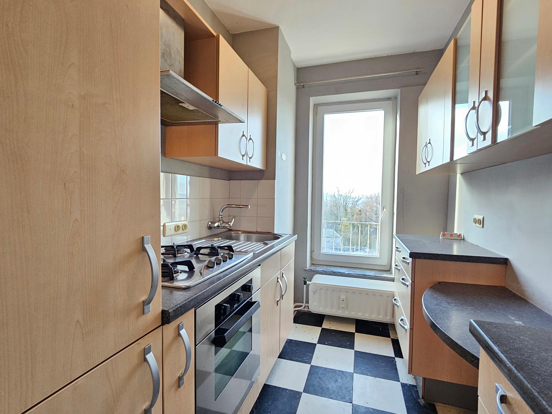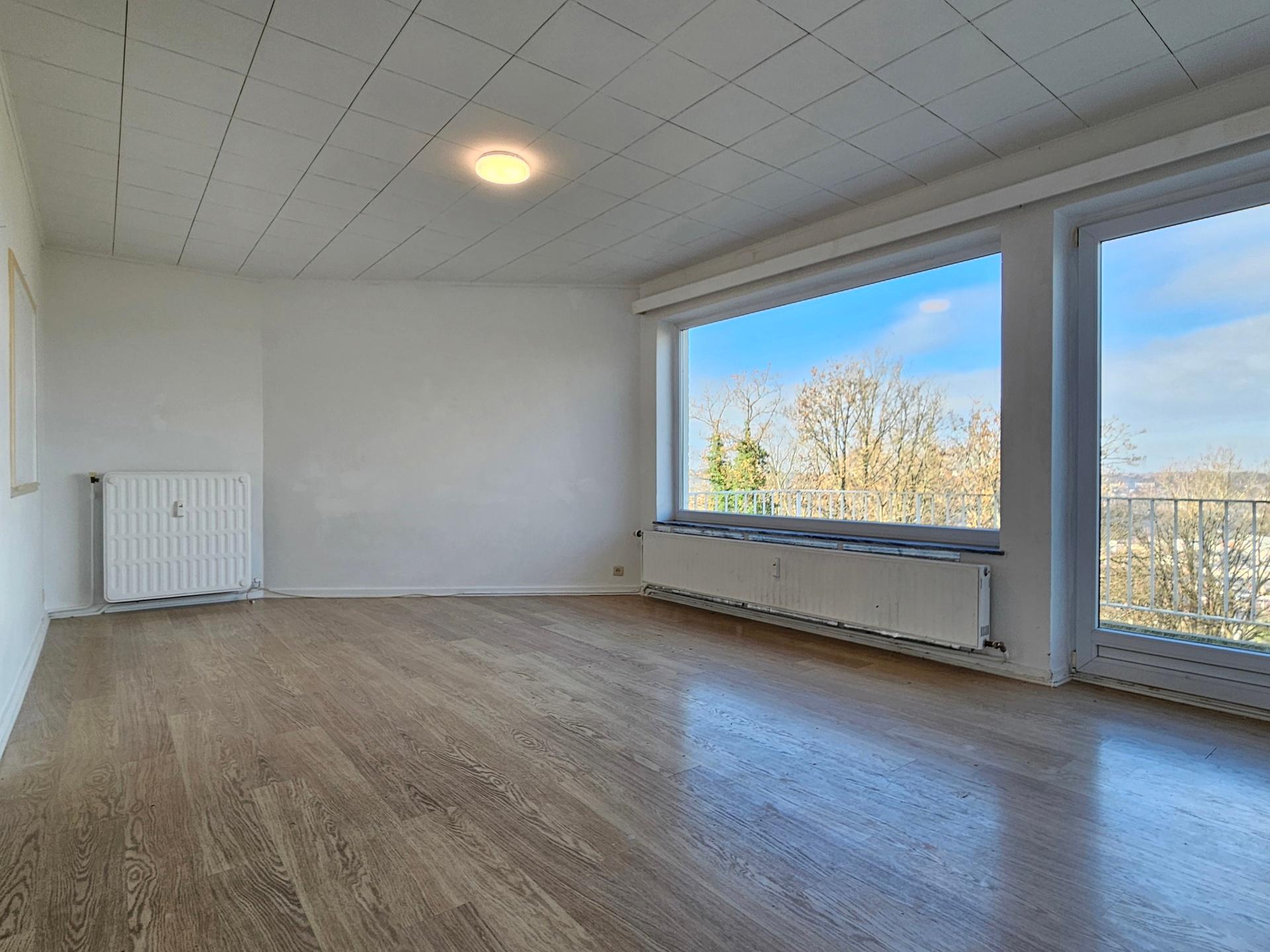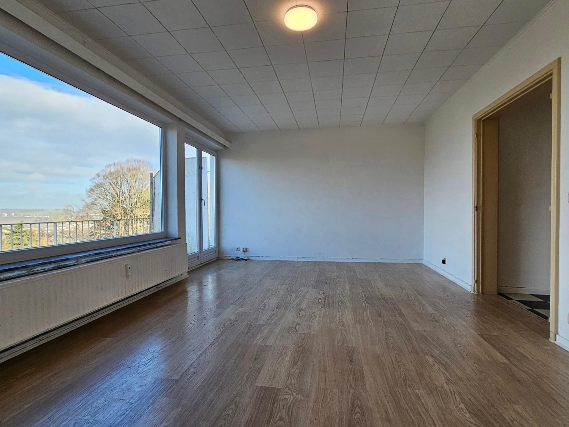 VENDU – en attente de signature du compromis – Inscrivez-vous maintenant sur www.latouretpetit.be pour recevoir nos biens en avant-première. NAMUR, à la citadelle, bel APPARTEMENT (2ch/1sdb) situé au 2ème étage d’une petite résidence et jouissant d'une superbe vue sur la ville. L'appartement est composé d'un spacieux hall d'entrée (avec espace penderie) qui mène au séjour longé par une grande terrasse. Tout deux profitent pleinement d'une magnifique vue vers la vallée Namuroise. Le hall dessert également une cuisine équipée, une salle de bain, deux chambres confortables ainsi qu'un W.C. séparé. Outre ces espaces de vie, la vente comprend également un spacieux grenier à l'étage supérieur, ainsi qu'une cave en sous-sol. Un garage (avec parking devant) est disponible en supplément pour 20.000€. Un jardin commun est accessible à l'ensemble des copropriétaires. Châssis PVC Double vitrage, Installation électrique non-conforme, chaudière collective au gaz. Charges mensuelles de 295€ comprenant le chauffage et l'eau privative ainsi que l'entretien des communs. PEB F - 495 kWh/m².an - 20180506004057. Á découvrir chez Latour & Petit 081/303.404