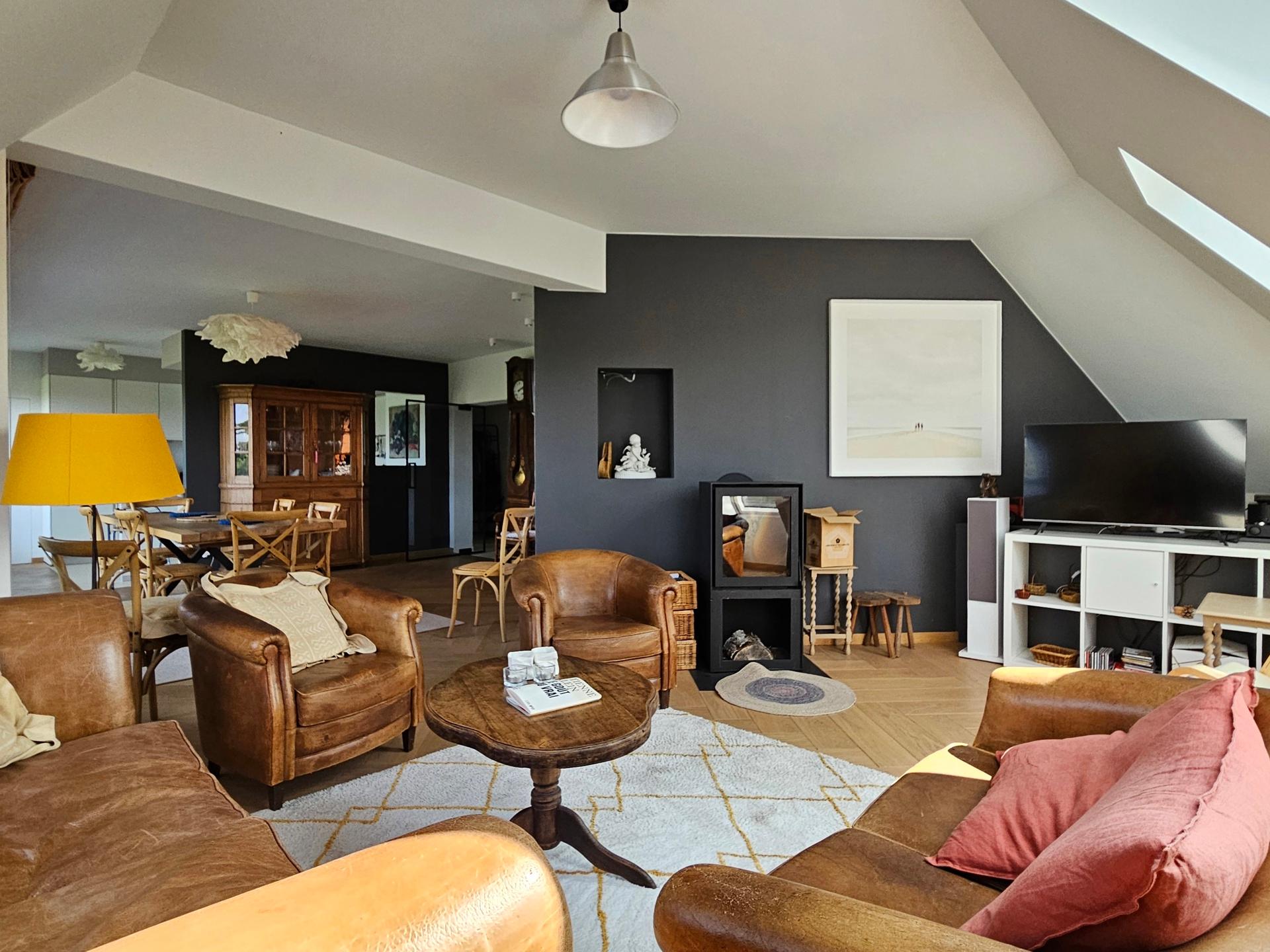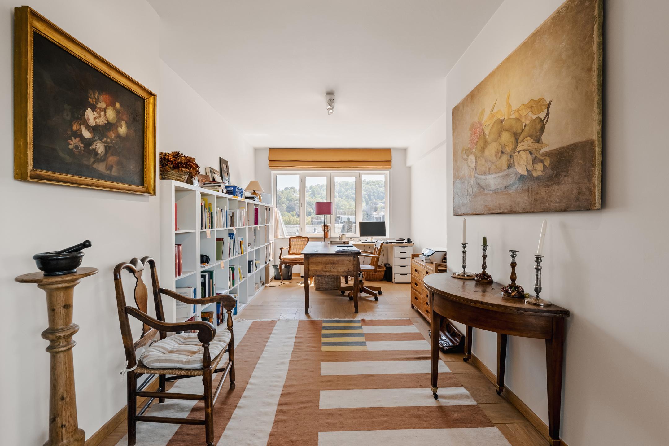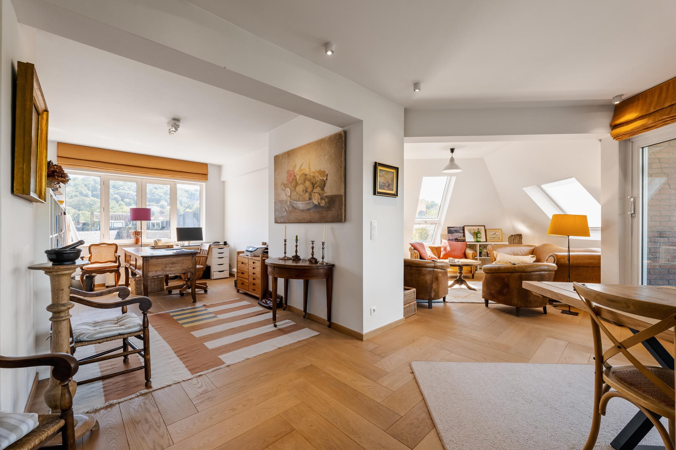 VENDU – en attente de signature du compromis – Inscrivez-vous maintenant sur www.latouretpetit.be pour recevoir nos biens en avant-première. NAMUR, en centre-ville, avec vue sur le parc et la citadelle, lumineux APPARTEMENT (3ch+bur/2sdb) situé au 5ème étage d’une belle résidence et entièrement rénové en 2023. L'appartement, est composé d'un spacieux hall d'entrée avec W.C. séparé. Celui-ci dessert un superbe séjour divisé en un espace bureau, un espace salon avec poêle à bois et une salle à manger. Ce séjour est complété par une cuisine haut de gamme super équipée, semi-ouverte, l’ensemble étant longé par une jolie terrasse d’environ 16m² surplombant le parc Louise Marie. Une suite parentale composée d’une chambre, d’une salle de douche et d’un dressing/buanderie complète la partie Ouest de l’appartement. Le hall de nuit mène à une salle de bain ainsi qu’à deux chambres supplémentaires, jouissant chacune d’une vue sur la citadelle de Namur et la cathédrale Saint-Aubain. Le bien dispose également d'un grenier d’environ 10 m² et d'un parking (rampe d’accès limitant celui-ci à des véhicules de taille citadine) en sous-sol ainsi qu'un petit espace de rangement. Électricité conforme, chauffage sol, chaudière collective au gaz à condensation de 2022, châssis PVC DV de 2010 et baie vitrée en bois DV de 1980, parquet massif et epoxy, appartement ré-isolé par l'intérieur. Charges mensuelles de 415€ comprenant le chauffage et l'eau privative ainsi que l'entretien des communs. PEB E - 391 kWh/m².an - 20240810004791. Á découvrir chez Latour & Petit 081/303.404