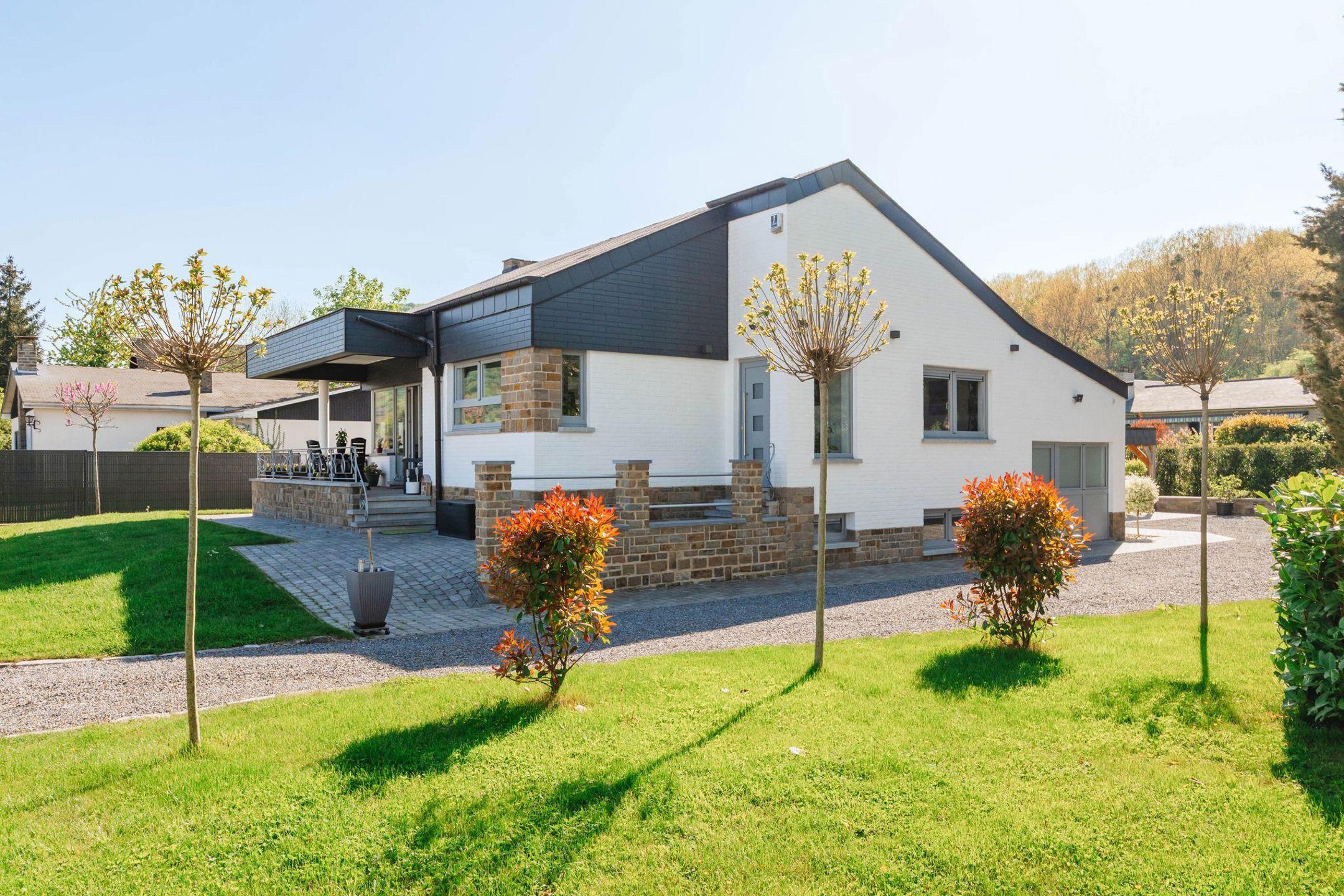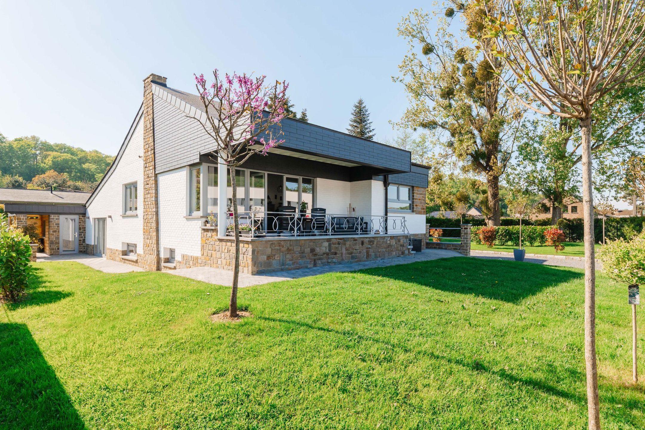VENDU – en attente de signature du compromis – Inscrivez-vous maintenant sur www.latouretpetit.be pour recevoir nos biens en avant-première. WEPION, magnifique VILLA (4ch+2Sdb) construite dans les années 70 sur un terrain de 12,88 ares, entièrement rénovée avec soin en 2022. Cette maison unifamiliale classique peut également être scindée en deux parties permettant l'exercice d'une profession libérale ou accueillir un habitat kangourou. Elle se compose d'un hall d'entrée qui dessert une cuisine spacieuse et lumineuse, ainsi qu’un séjour en « L » comprenant un feu ouvert et ouvrant sur une terrasse couverte. Ce hall mène également à une chambre, une salle de douche, ainsi qu’à l’accès à la cage d’escalier. L’escalier conduit à un hall de nuit (ou second hall d’entrée) distribuant trois chambres confortables, dont une avec terrasse, ainsi qu’une salle de bain comprenant à la fois une douche et une baignoire. Celui-ci permet également d’accéder, au niveau inférieur, aux trois caves, saines et spacieuses. À l’extérieur, la parcelle est entièrement clôturée et dispose de deux portails, dont l’un est motorisé. On y trouve un beau parking, un garage rénové, ainsi qu’un carport de qualité pouvant accueillir deux véhicules. Le jardin, joliment arboré, est entouré d’abords soigneusement aménagés. Toiture neuve et isolée, châssis PVC double vitrage, chaudière à condensation au gaz de ville, électricité conforme, portail et porte de garage motorisée, alarme, matériaux de qualité, finitions irréprochables, PEB C, 212kWh/m².an, 63.077 kWh/an, 20230227032409. A découvrir chez LATOUR&PETIT 081/303.404