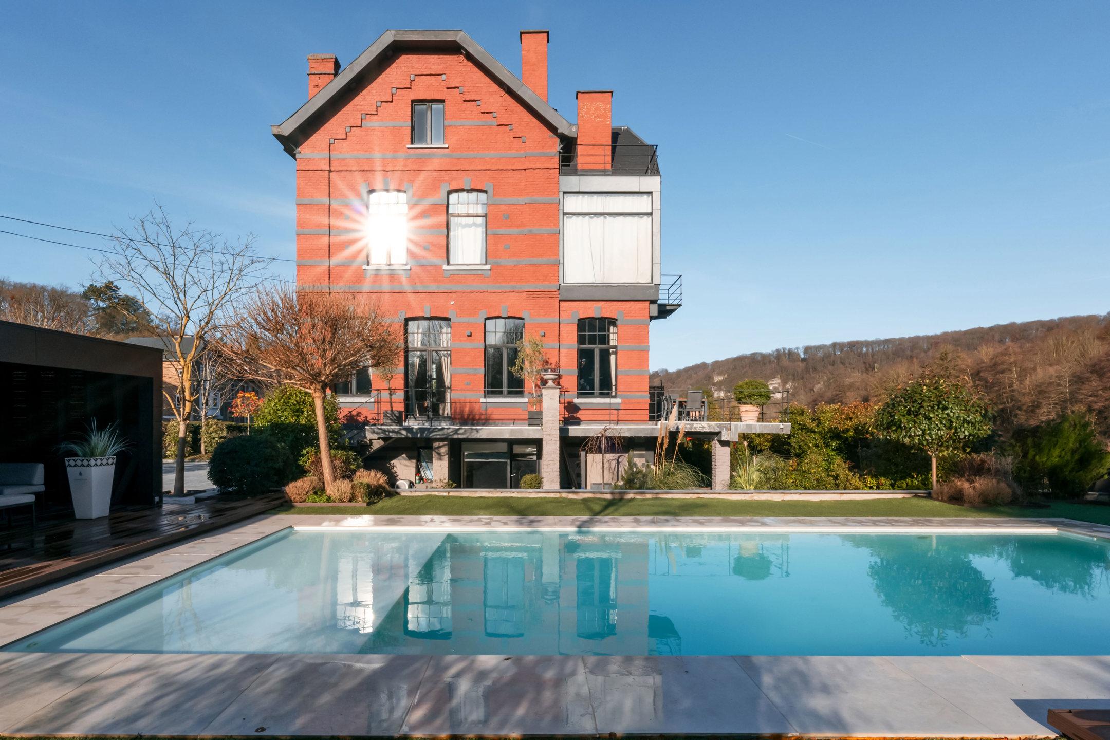 À l'étage, le palier dessert deux belles chambres situées côté Meuse. La seconde, très spacieuse, de type suite parentale, possède sa propre salle de bain. Une deuxième salle d'eau est accessible depuis le palier. Le deuxième étage offre deux chambres supplémentaires ainsi qu'une troisième salle de bain. Le troisième niveau est un grenier accessible par un escalier fixe, isolé, et aisément utilisable en 5ème chambre avec espace de rangement. Le rez-de-jardin couvre toute la superficie de la demeure. Celui-ci pourrait être aménagé en espace de vie supplémentaire. Aujourd'hui il abrite des caves de rangement (aisément aménageable en espace de vie) ainsi que la chaufferie. L'ensemble est situé sur une parcelle aménagée avec goût, offrant un espace pavé pour le parking, complété par un double car-port, une remise, une superbe piscine orientée Sud bénéficiant d'un accès direct à la terrasse ainsi que d'une vue Meuse, tout en gardant une excellente intimité grâce aux plantations. Immeuble entièrement rénové en 2013 et 2014 aussi bien sur le plan technique qu'esthétique. Châssis PVC Double vitrage, Chauffage central au mazout (condensation), murs et toiture isolés. PEB B - 132 kWh/m².an - 74 247 kWh/an - 20230623020188. À découvrir chez Latour & Petit 081/303.404