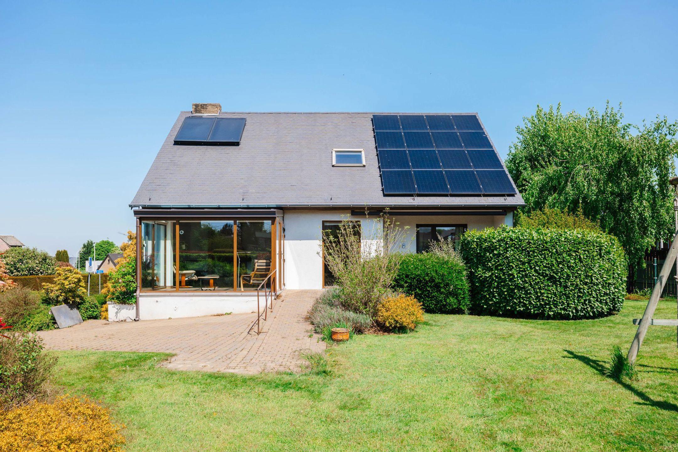 Les espaces extérieurs comprennent à l’avant une partie jardin avec un chemin d’accès à la propriété, sur le côté une double entrée de garage ainsi qu’une rampe d’accès pour véhicules, à l’arrière une terrasse ainsi qu’un jardin orienté sud. Toiture en Eternit – Installation Photovoltaïque + Panneaux solaires + Boiler thermodynamique – Châssis double vitrage Bois (PVC pour la véranda). PEB C – 254 kWh/m².an – 53 323 kWh/an - 20250401034256. À découvrir chez Latour & Petit 081/303.404.