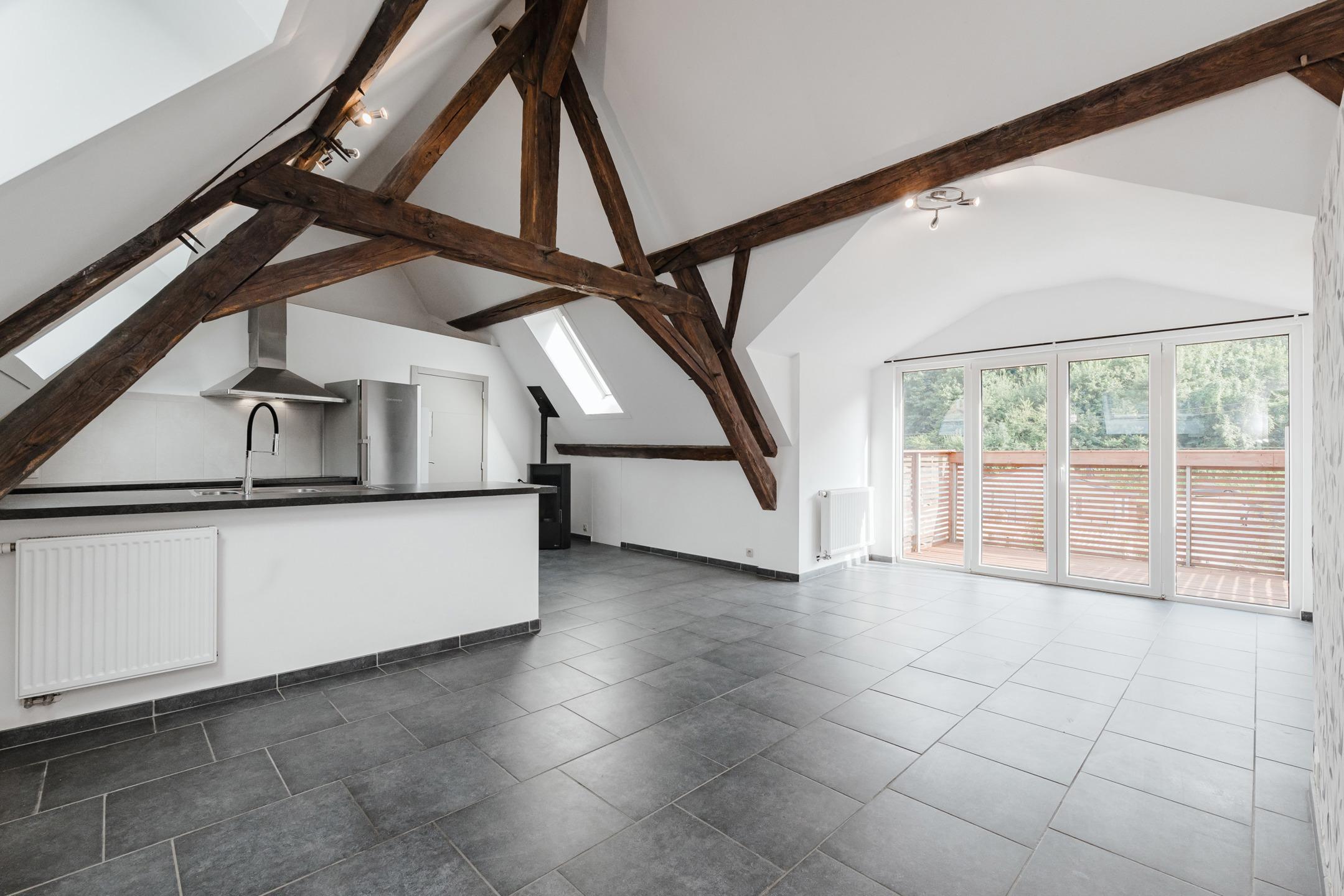 VENDU – en attente de signature du compromis – Inscrivez-vous maintenant sur www.latouretpetit.be pour recevoir nos biens en avant-première. Arbre (Profondeville), non loin du bord de Meuse, bel et lumineux APPARTEMENT (1ch+1sdb) situé au 1er étage d'une petite résidence de 3 appartements. Celui-ci est composé d’un hall d’entrée qui dessert la buanderie privative et l’escalier qui mène à l’appartement. Le palier donne accès au WC et à l’entrée de la pièce de vie. Une cuisine équipée est ouverte sur le séjour avec accès vers la terrasse orientée plein Sud. L’espace nuit (chambre et salle d’eau) est niché derrière une demi cloison. L’appartement dispose également de greniers de rangement dans les combles. Électricité conforme, chaudière individuelle au mazout de 2007, Poêle à pellets de 2020, châssis PVC DV de 2008, toiture et Velux de 2019. Pas de charges communes. PEB C - 244 kWh/m².an - 20240823014163. À découvrir chez Latour & Petit 081/303.404
